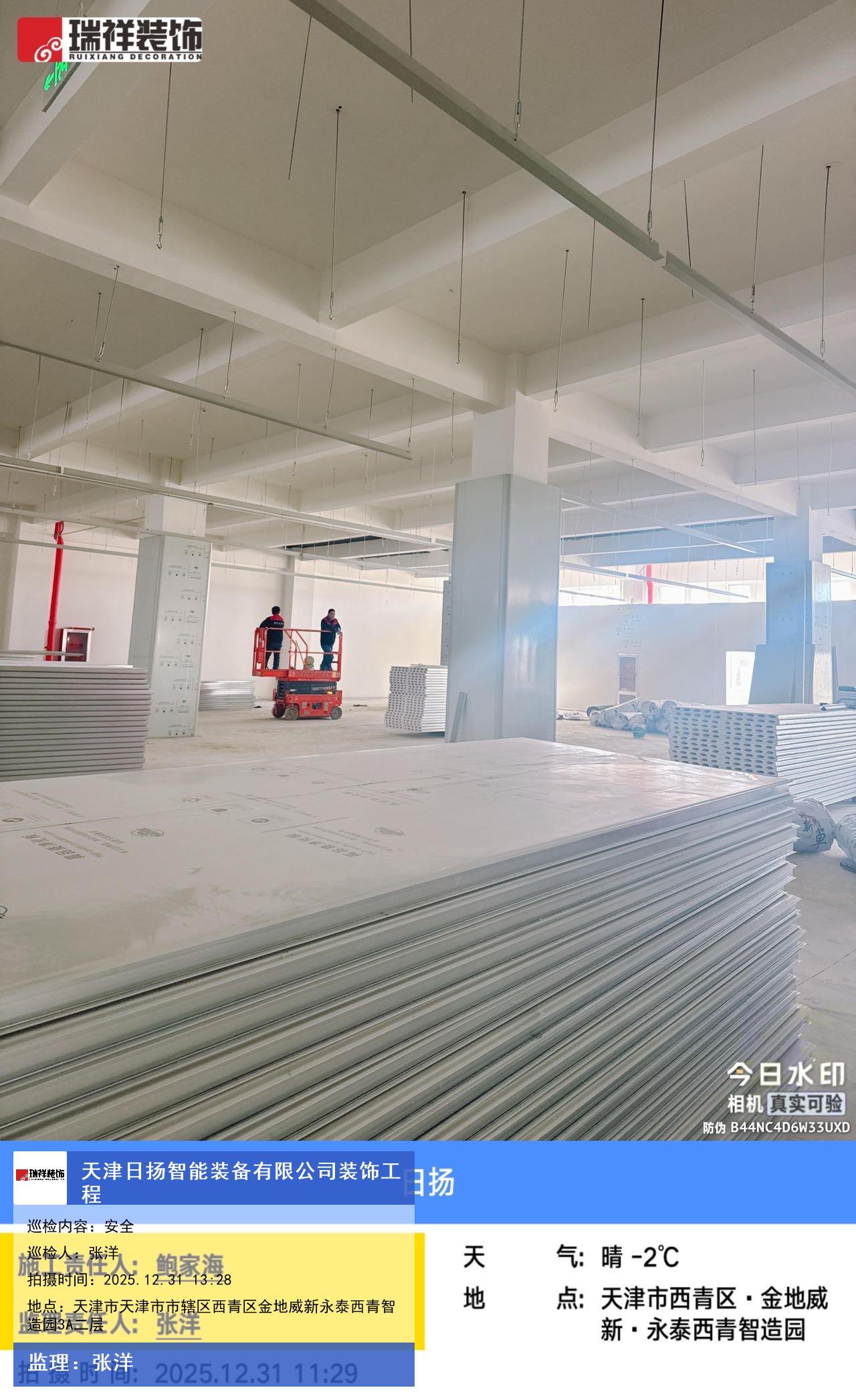 版权声明:本站所有文章除特别标注授权发布外,其他文字内容均为原创,享有著作权保护,未经许可不得以任何形式进行转载(包括且不限于:媒体、网站、公众号等)。本文链接 -> 天津日扬智能装备有限公司办公室设计公司2025年12月31日工程监理巡检