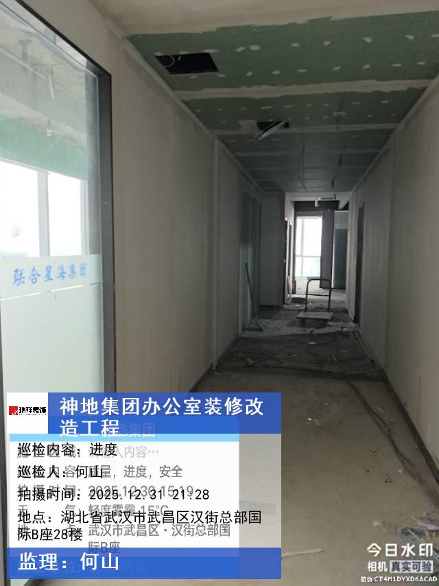 版权声明:本站所有文章除特别标注授权发布外,其他文字内容均为原创,享有著作权保护,未经许可不得以任何形式进行转载(包括且不限于:媒体、网站、公众号等)。本文链接 -> 湖北神地汇丰科技有限公司办公室装修装饰2025年12月31日工程监理巡检