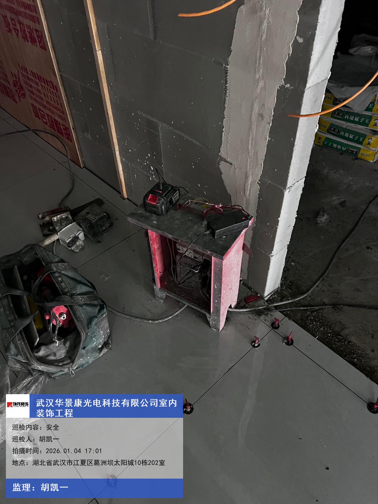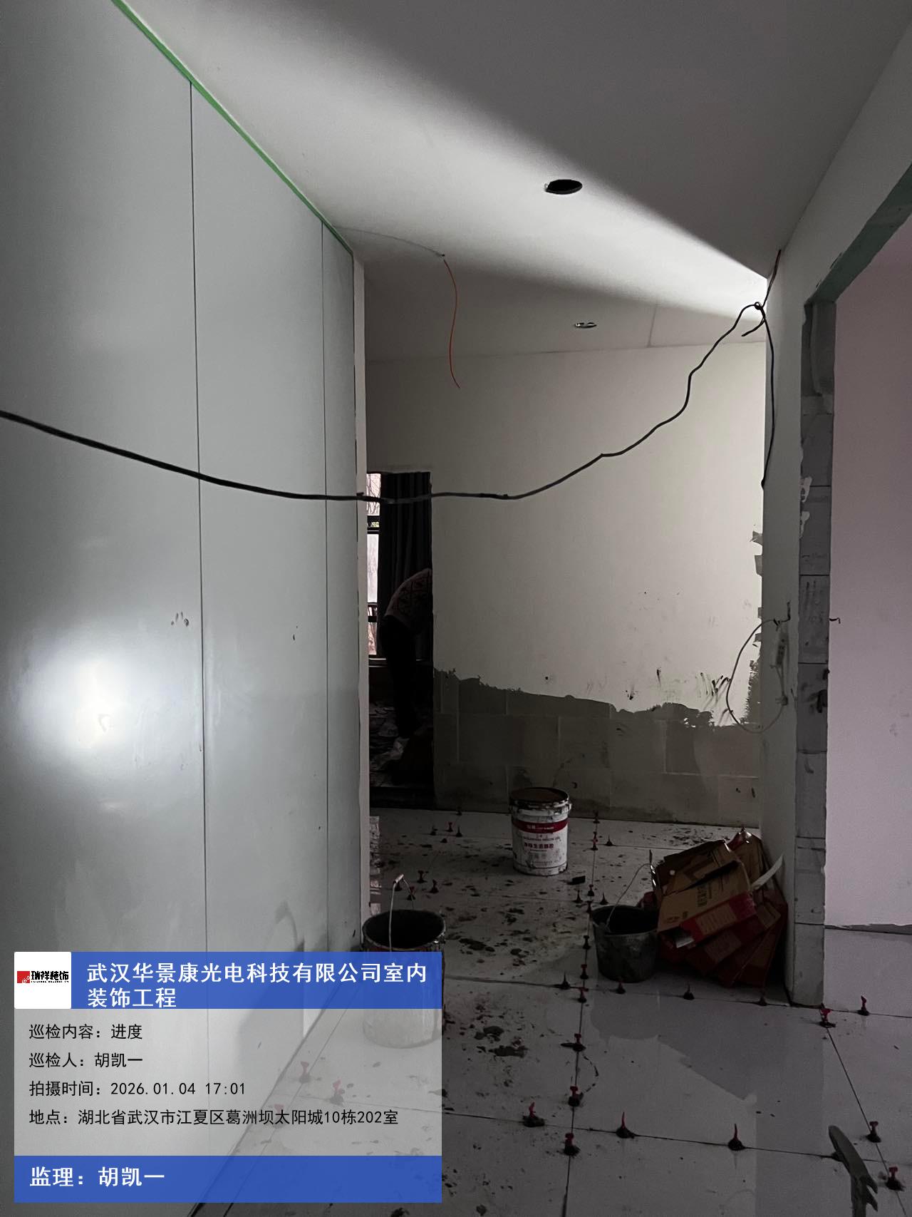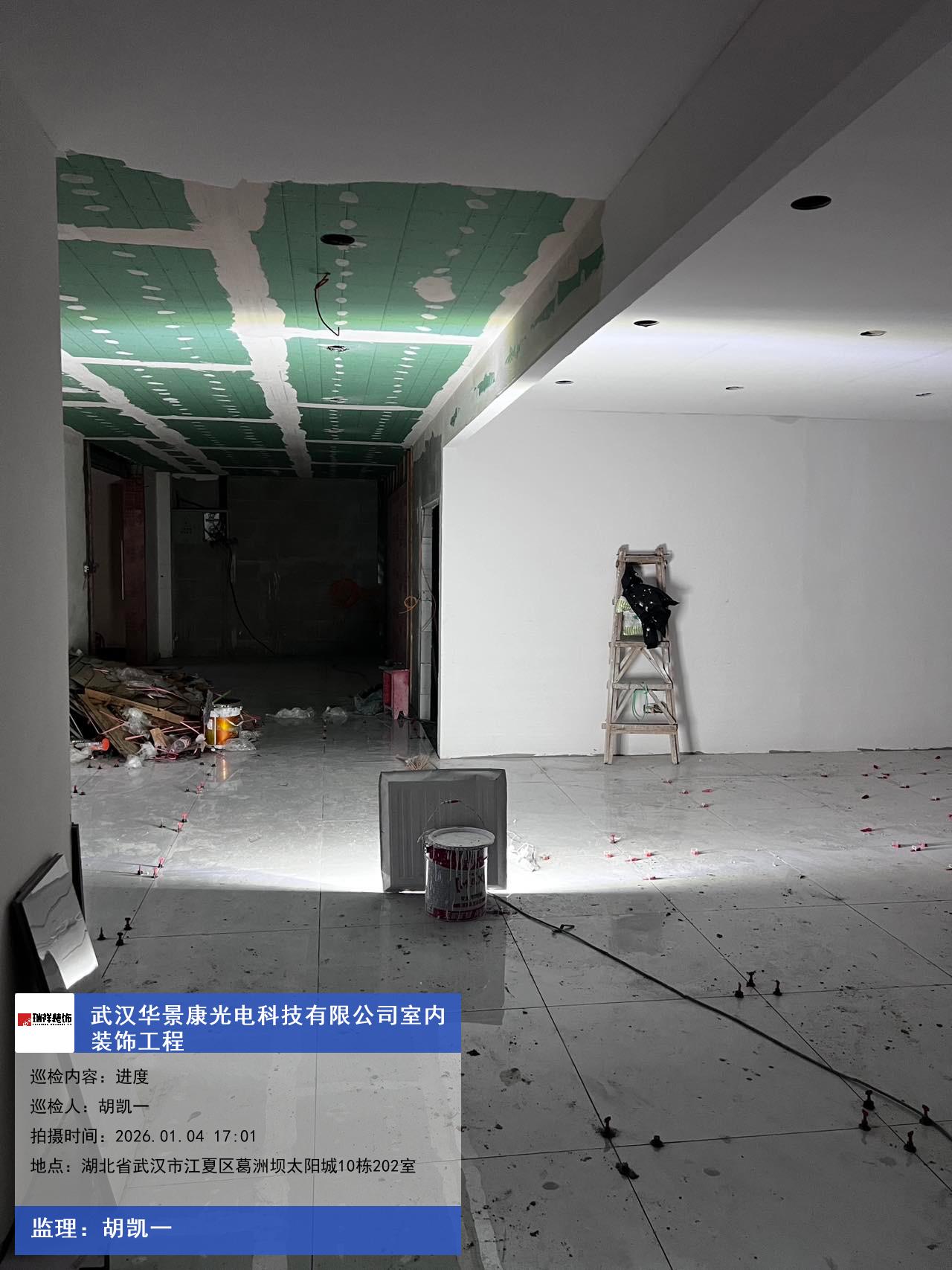 版权声明:本站所有文章除特别标注授权发布外,其他文字内容均为原创,享有著作权保护,未经许可不得以任何形式进行转载(包括且不限于:媒体、网站、公众号等)。本文链接 -> 武汉华景康光电科技有限公司办公室装修2026年01月04日工程监理巡检