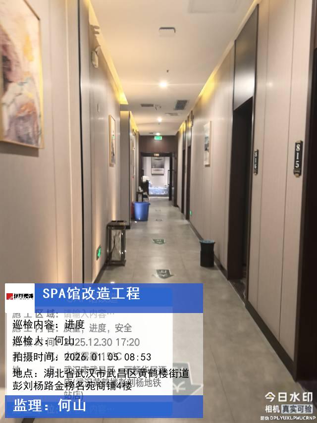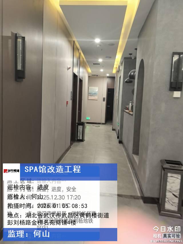 版权声明:本站所有文章除特别标注授权发布外,其他文字内容均为原创,享有著作权保护,未经许可不得以任何形式进行转载(包括且不限于:媒体、网站、公众号等)。本文链接 -> SPA馆改造工程商业装修2026年01月05日工程监理巡检