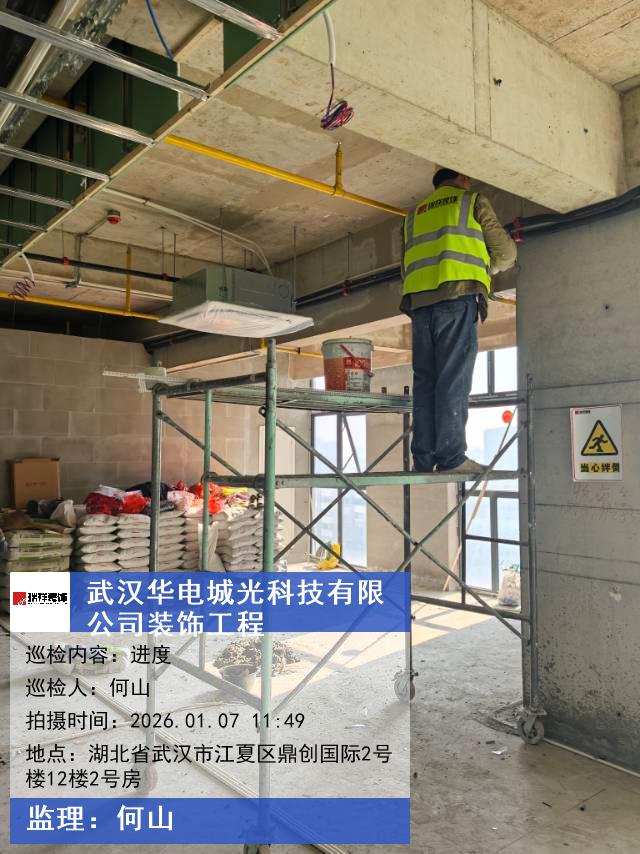 版权声明:本站所有文章除特别标注授权发布外,其他文字内容均为原创,享有著作权保护,未经许可不得以任何形式进行转载(包括且不限于:媒体、网站、公众号等)。本文链接 -> 武汉华电城光科技有限公司办公室装修装饰2026年01月07日工程监理巡检
