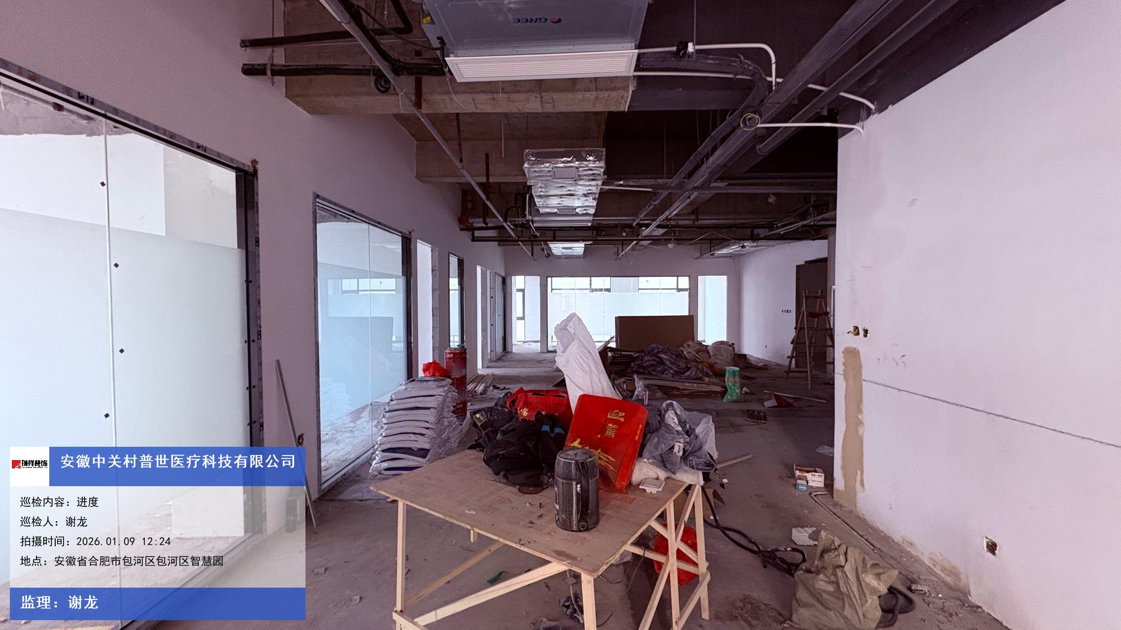 版权声明:本站所有文章除特别标注授权发布外,其他文字内容均为原创,享有著作权保护,未经许可不得以任何形式进行转载(包括且不限于:媒体、网站、公众号等)。本文链接 -> 安徽中关村普世医疗科技有限公司办公室装修装饰2026年01月09日工程监理巡检