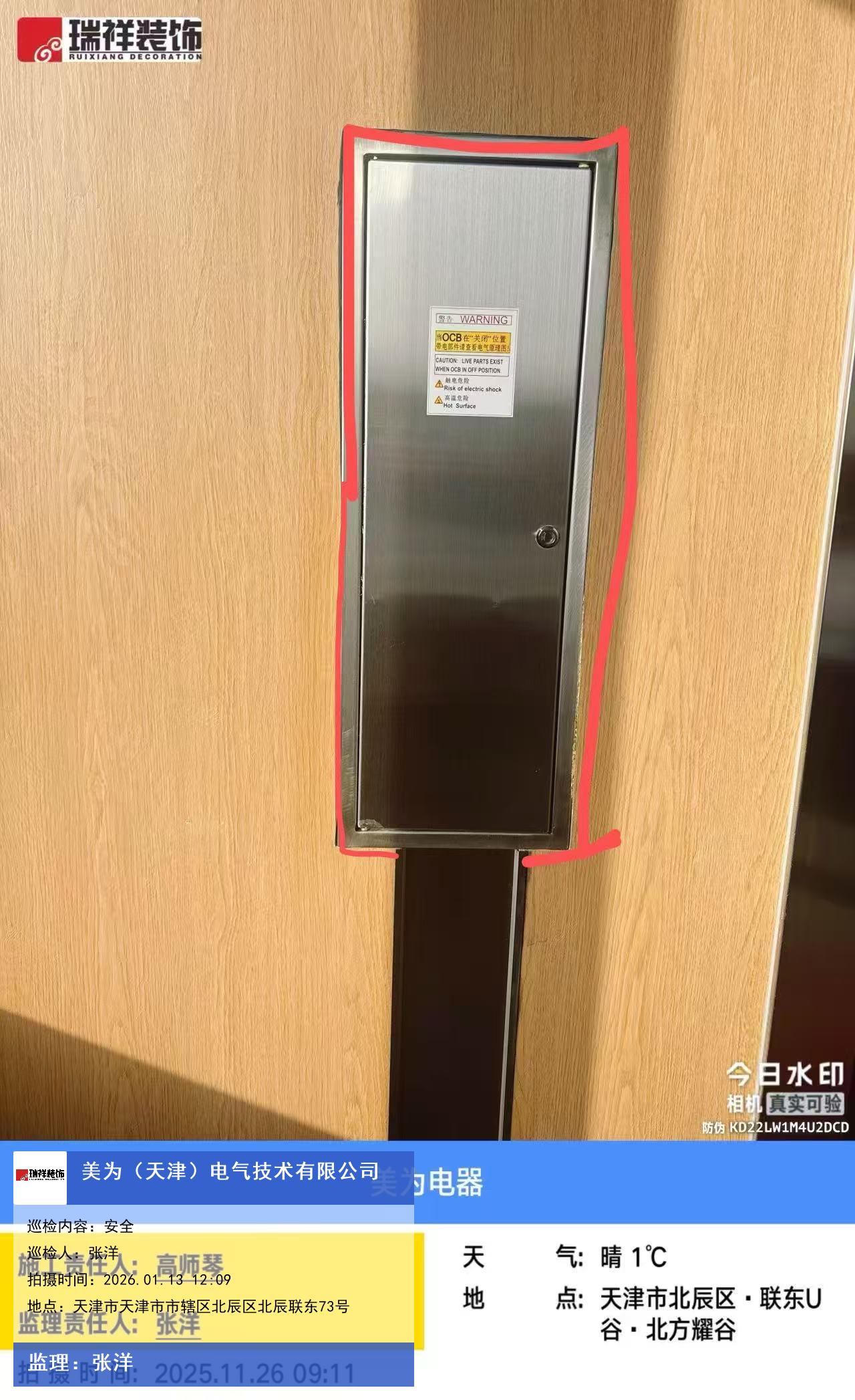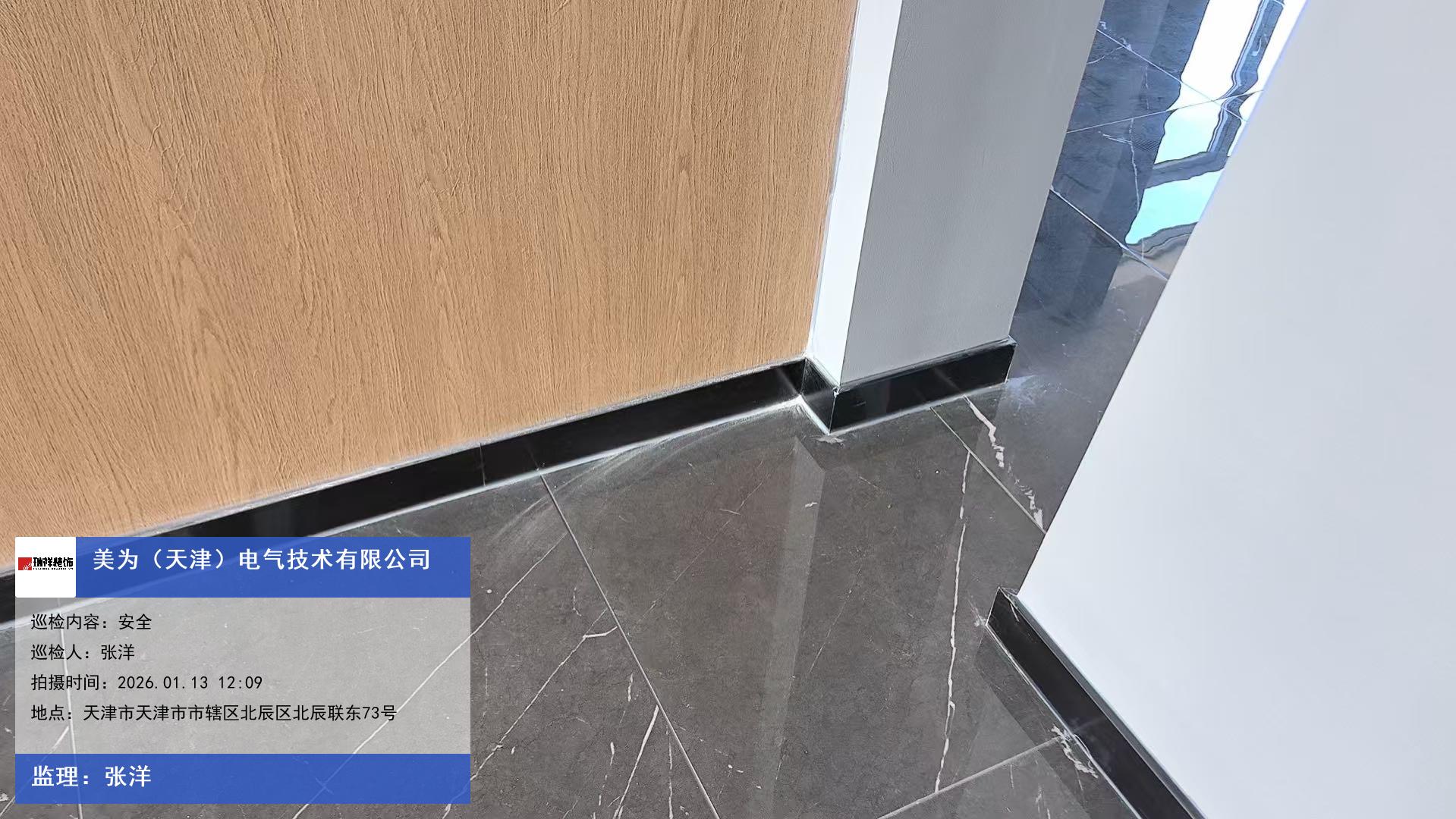 版权声明:本站所有文章除特别标注授权发布外,其他文字内容均为原创,享有著作权保护,未经许可不得以任何形式进行转载(包括且不限于:媒体、网站、公众号等)。本文链接 -> 美为(天津)电气技术有限公司办公楼装修2026年01月13日工程监理巡检