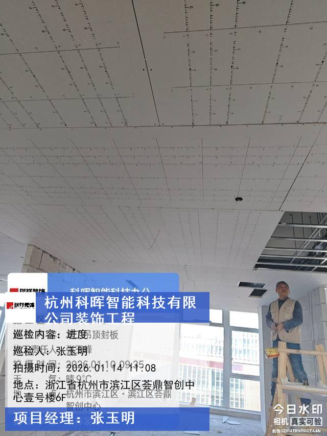 版权声明:本站所有文章除特别标注授权发布外,其他文字内容均为原创,享有著作权保护,未经许可不得以任何形式进行转载(包括且不限于:媒体、网站、公众号等)。本文链接 -> 杭州科晖智能科技有限公司专业办公室装修2026年01月14日项目经理巡检