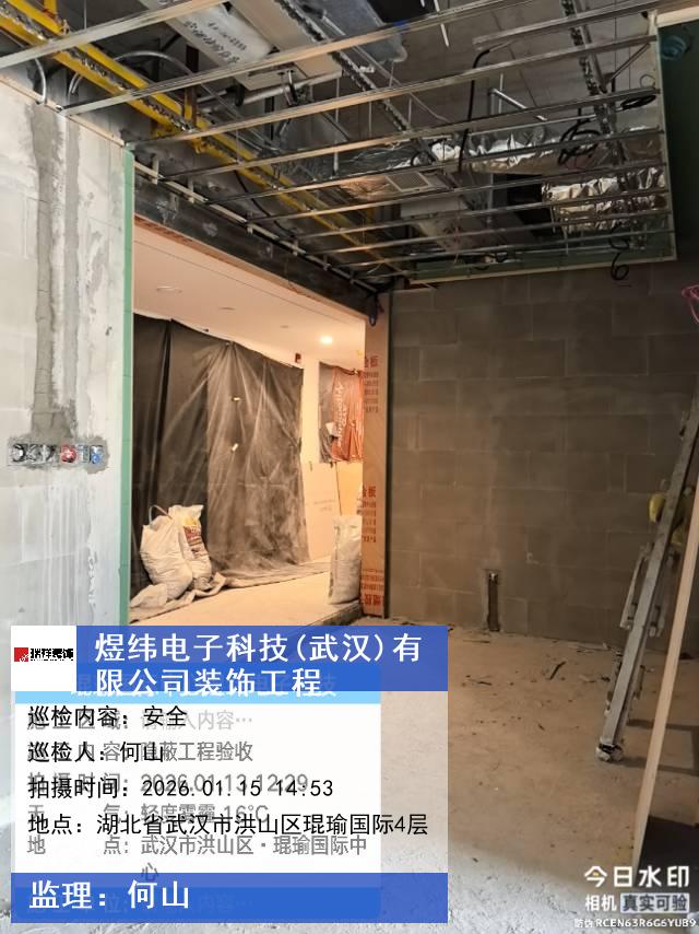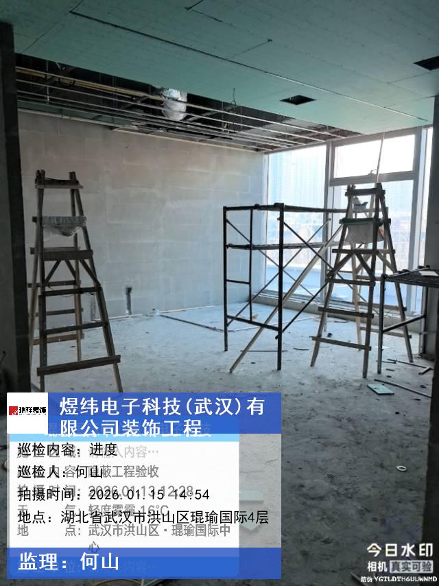 版权声明:本站所有文章除特别标注授权发布外,其他文字内容均为原创,享有著作权保护,未经许可不得以任何形式进行转载(包括且不限于:媒体、网站、公众号等)。本文链接 -> 煜纬电子科技(武汉)有限公司办公楼装修2026年01月15日工程监理巡检