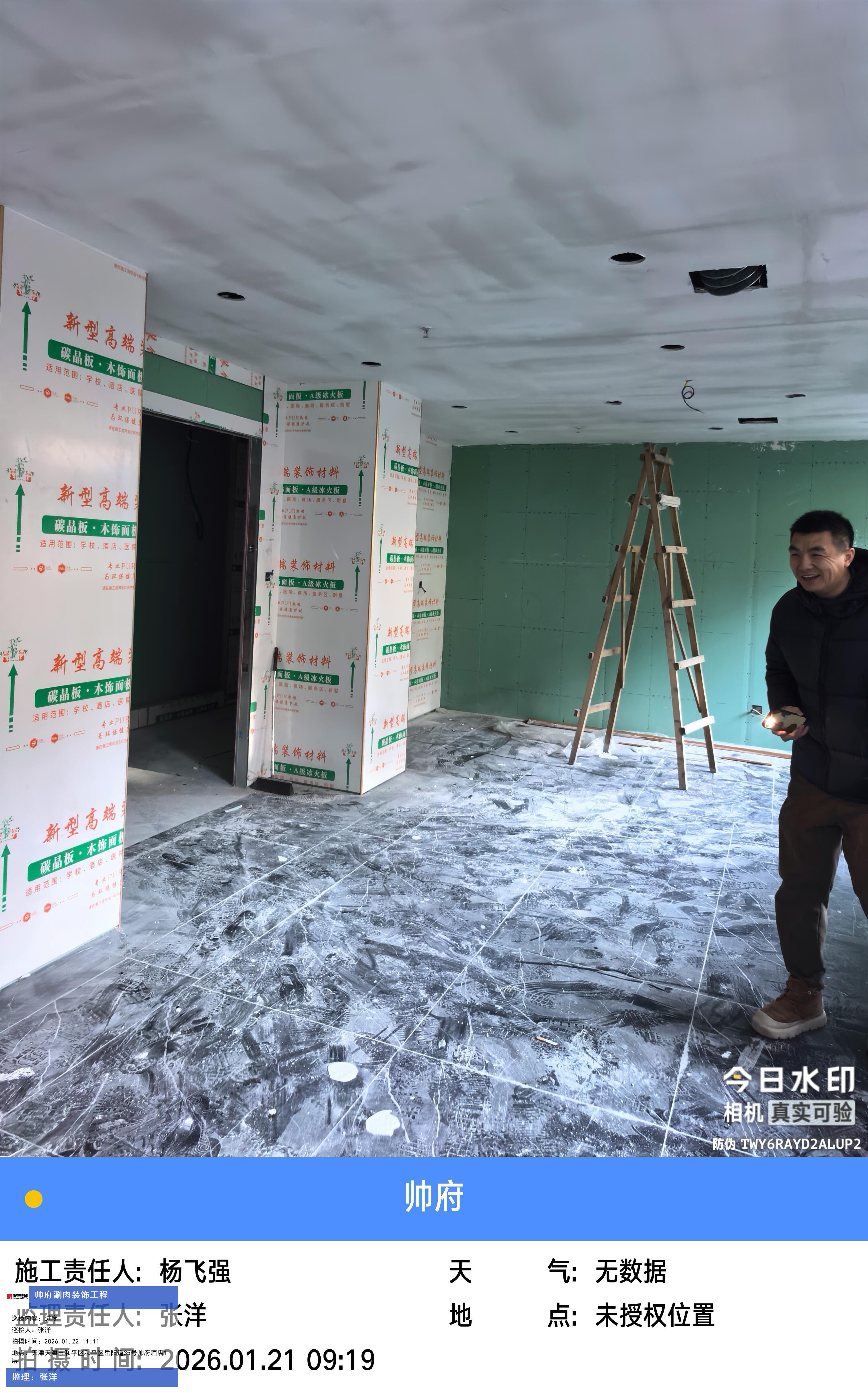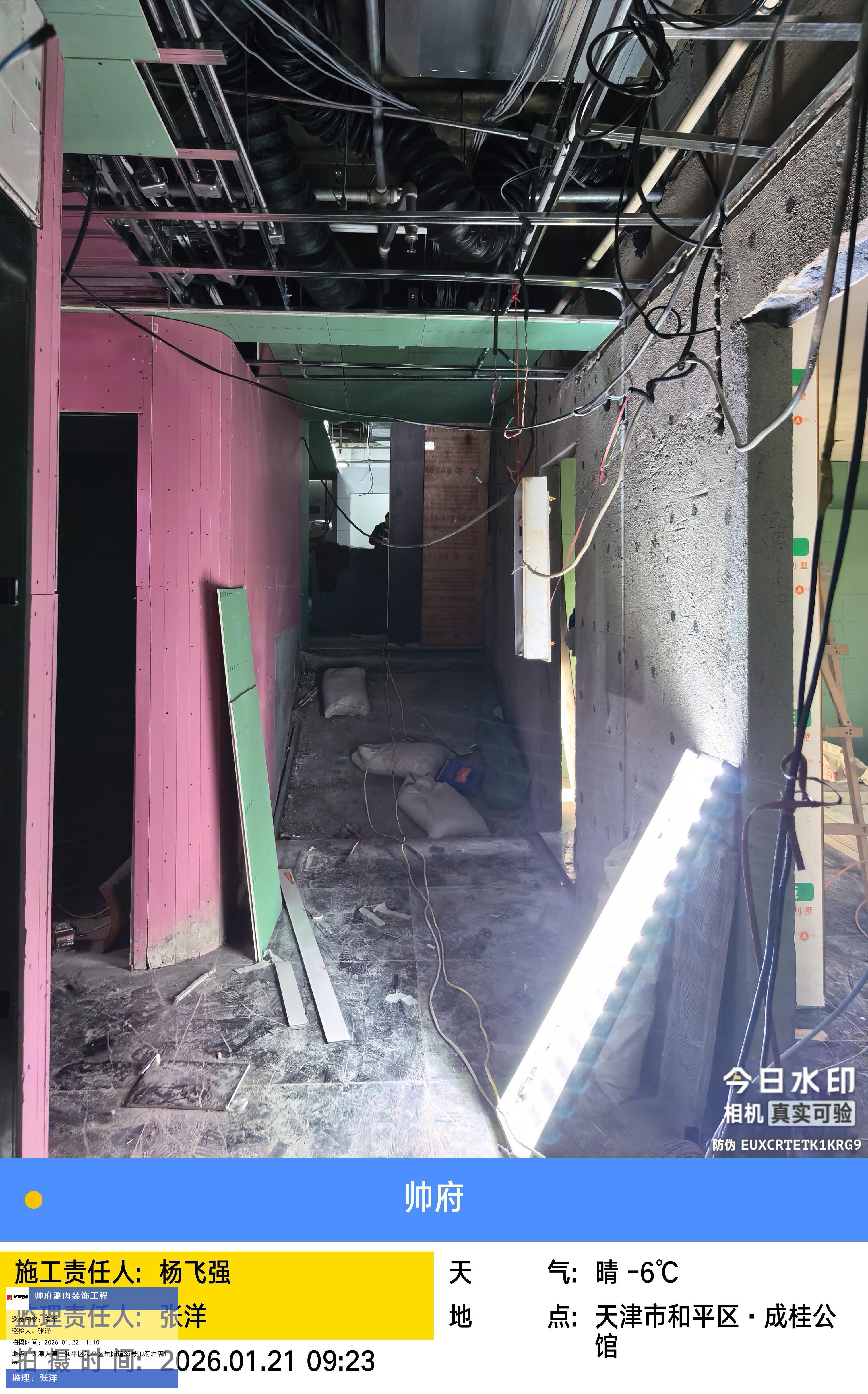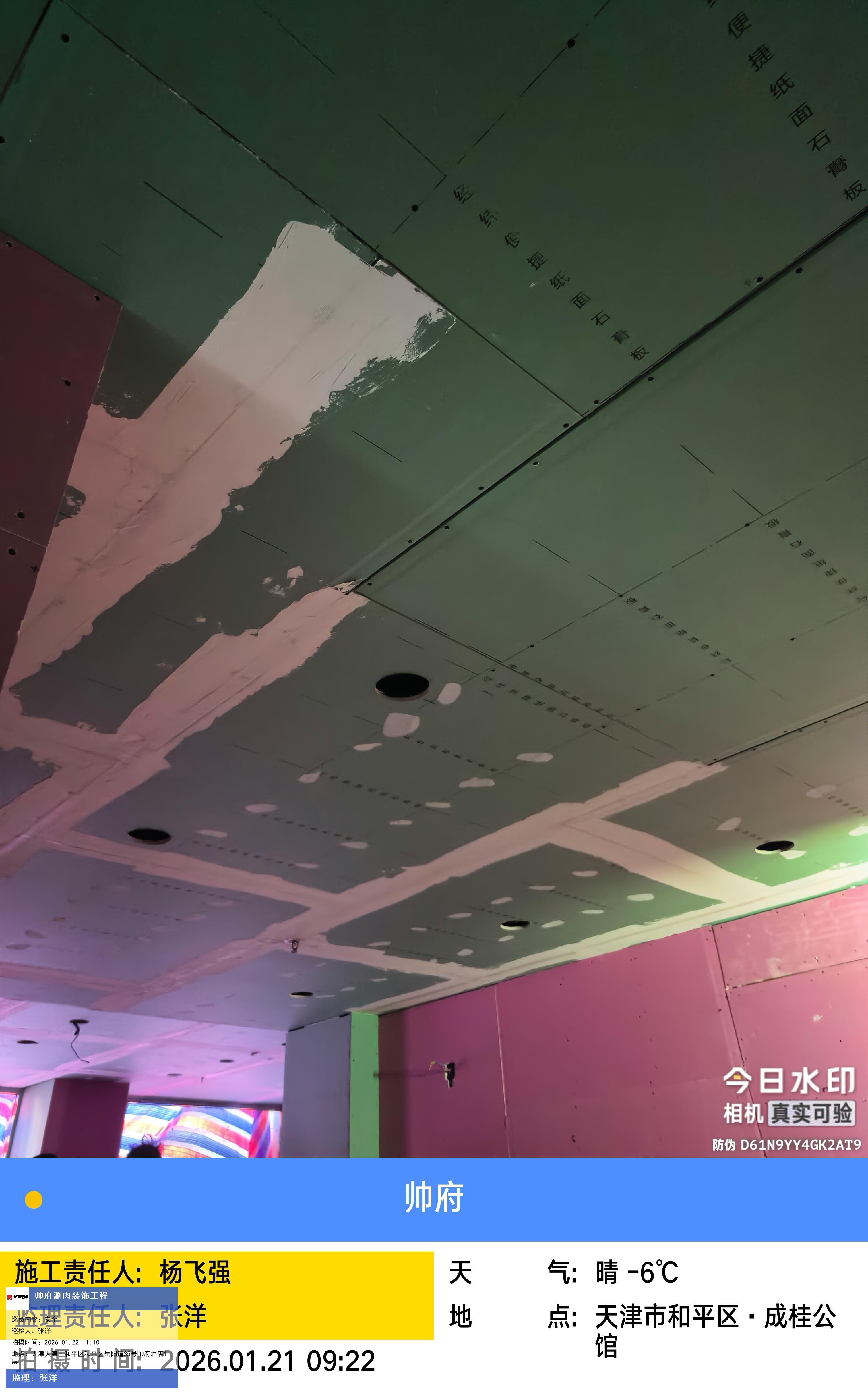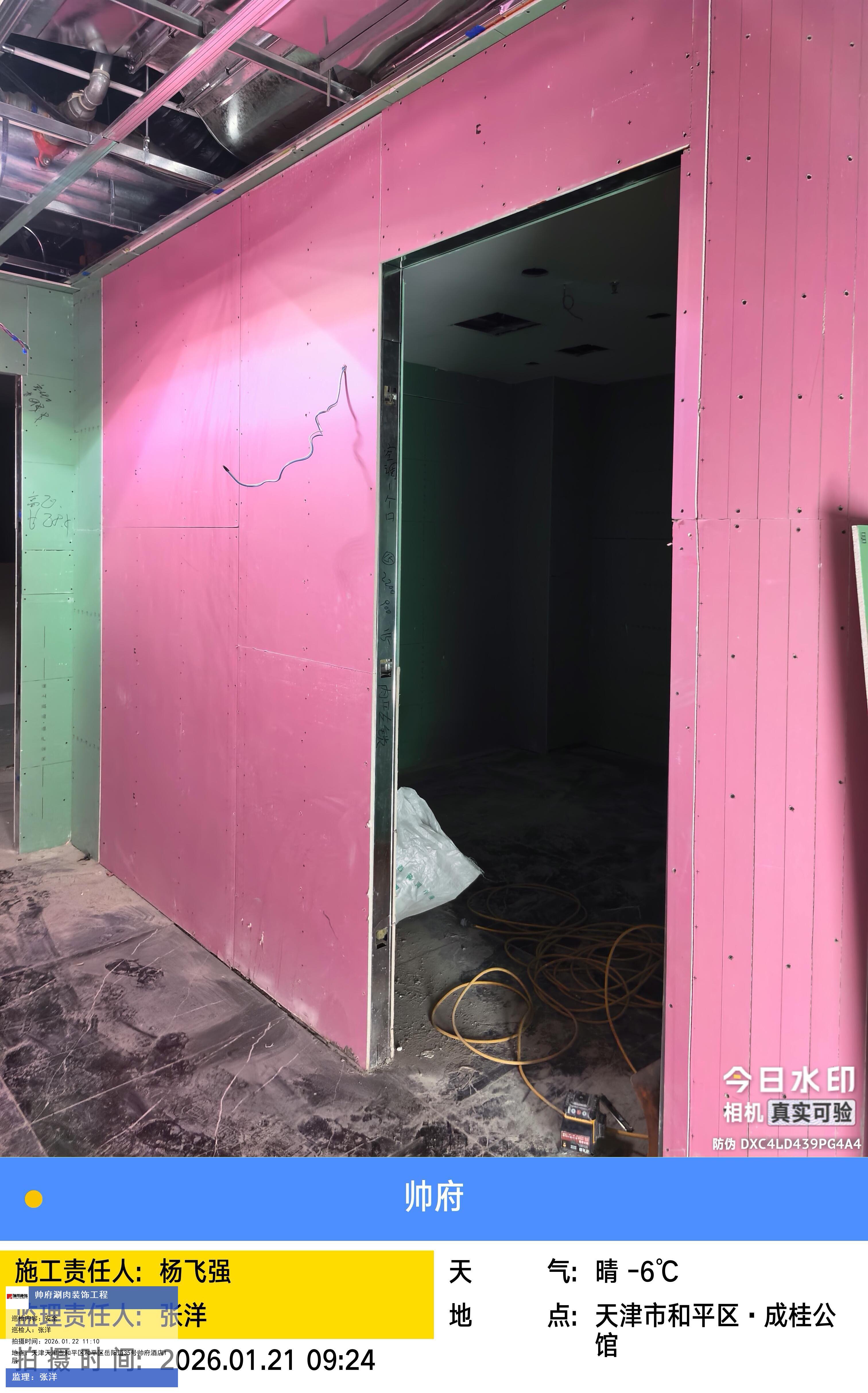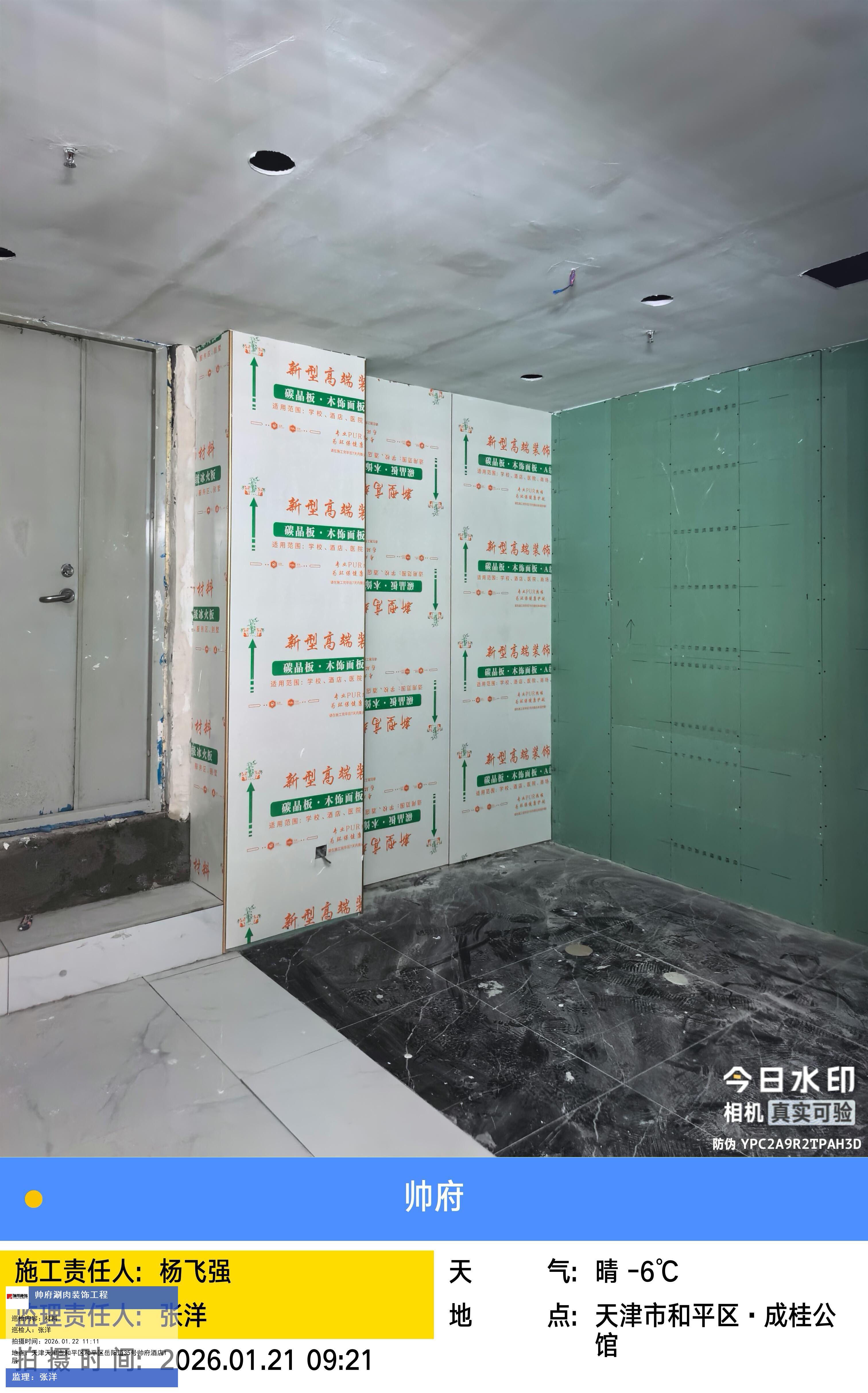 版权声明:本站所有文章除特别标注授权发布外,其他文字内容均为原创,享有著作权保护,未经许可不得以任何形式进行转载(包括且不限于:媒体、网站、公众号等)。本文链接 -> 天津帅府酒店管理有限公司餐饮分公司婚宴酒楼装修2026年01月22日工程监理巡检