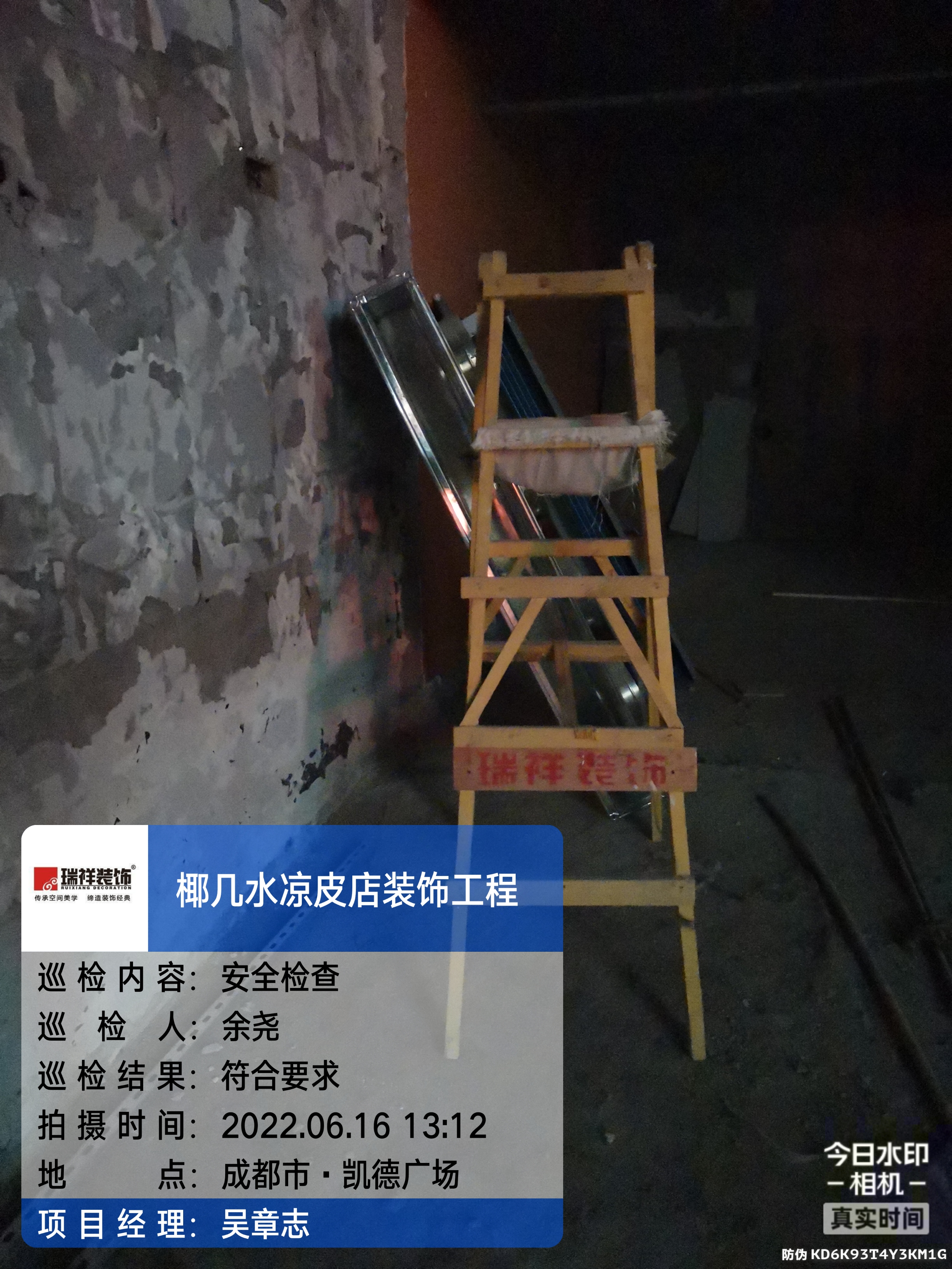 版权声明:本站所有文章除特别标注授权发布外,其他文字内容均为原创,享有著作权保护,未经许可不得以任何形式进行转载(包括且不限于:媒体、网站、公众号等)。本文链接 -> 椰几水凉皮店商业装修2022年06月16日工程监理巡检
