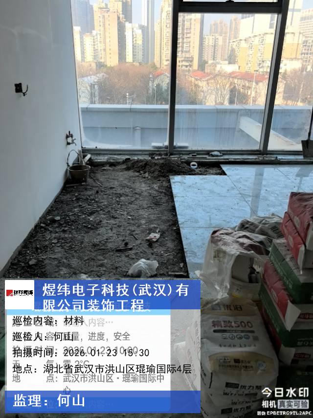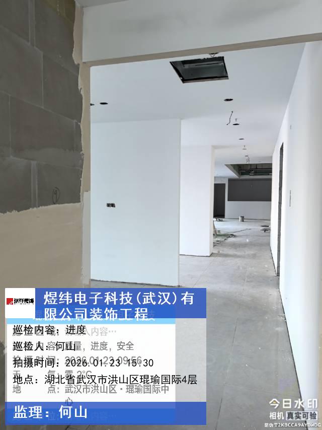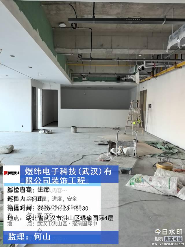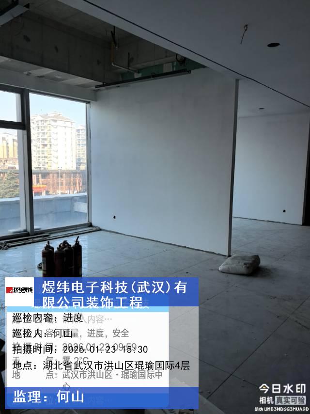 版权声明:本站所有文章除特别标注授权发布外,其他文字内容均为原创,享有著作权保护,未经许可不得以任何形式进行转载(包括且不限于:媒体、网站、公众号等)。本文链接 -> 煜纬电子科技(武汉)有限公司办公室装修2026年01月23日工程监理巡检