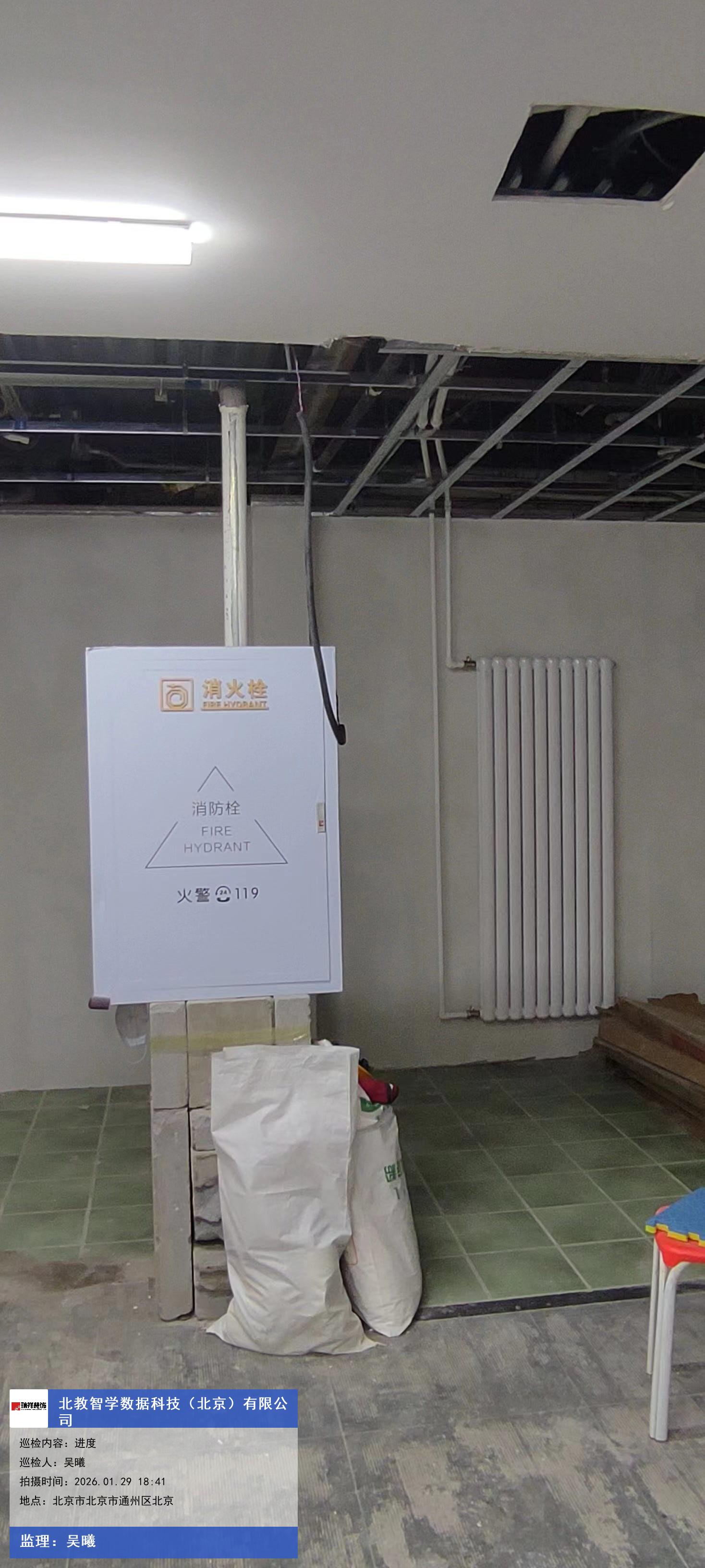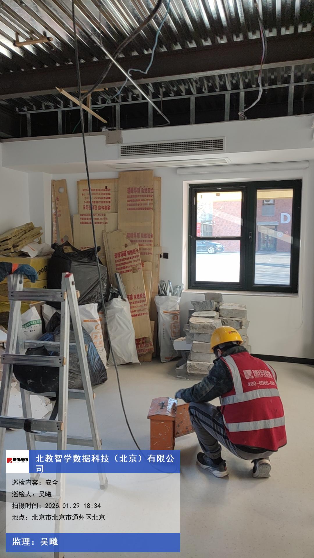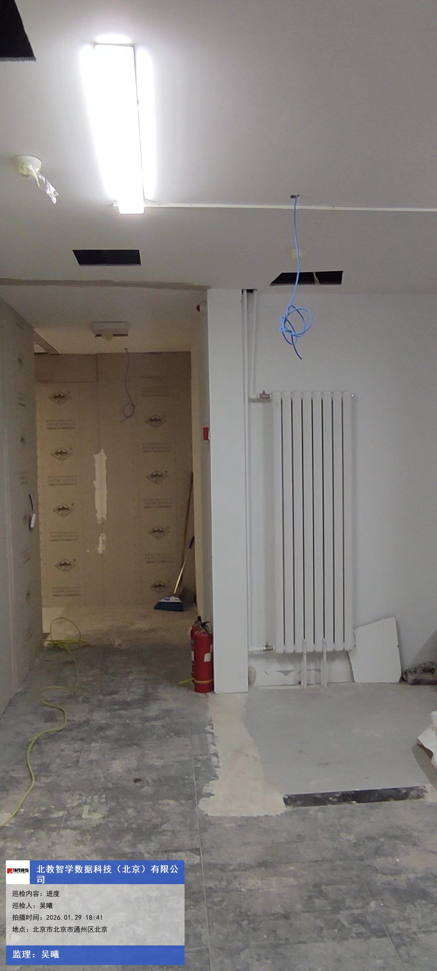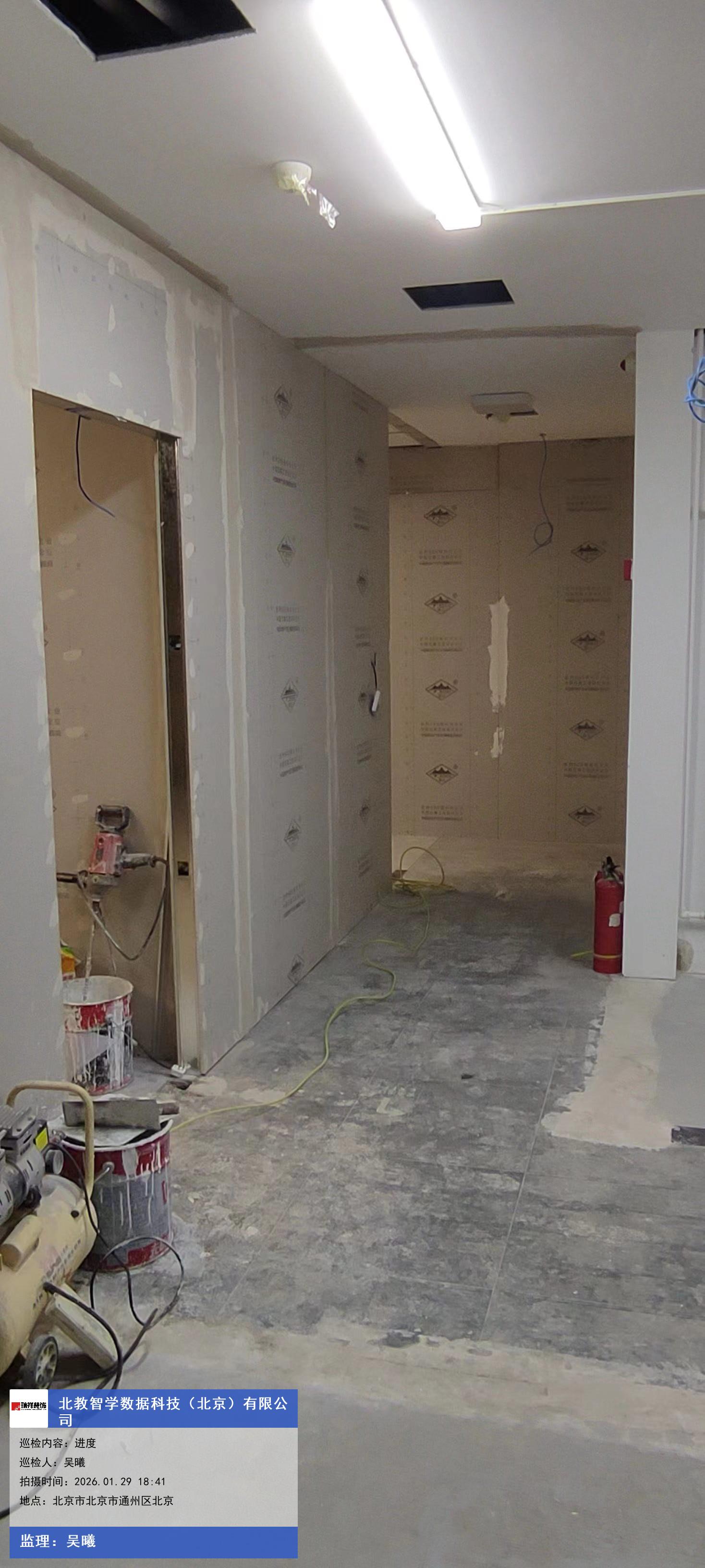 版权声明:本站所有文章除特别标注授权发布外,其他文字内容均为原创,享有著作权保护,未经许可不得以任何形式进行转载(包括且不限于:媒体、网站、公众号等)。本文链接 -> 北教智学数据科技(北京)有限公司写字楼装修2026年01月29日工程监理巡检