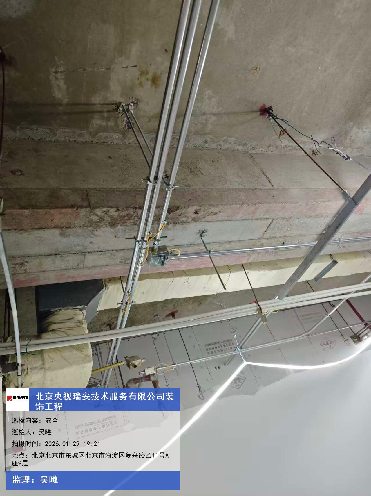 版权声明:本站所有文章除特别标注授权发布外,其他文字内容均为原创,享有著作权保护,未经许可不得以任何形式进行转载(包括且不限于:媒体、网站、公众号等)。本文链接 -> 北京央视瑞安技术服务有限公司网红办公室装修2026年01月29日工程监理巡检