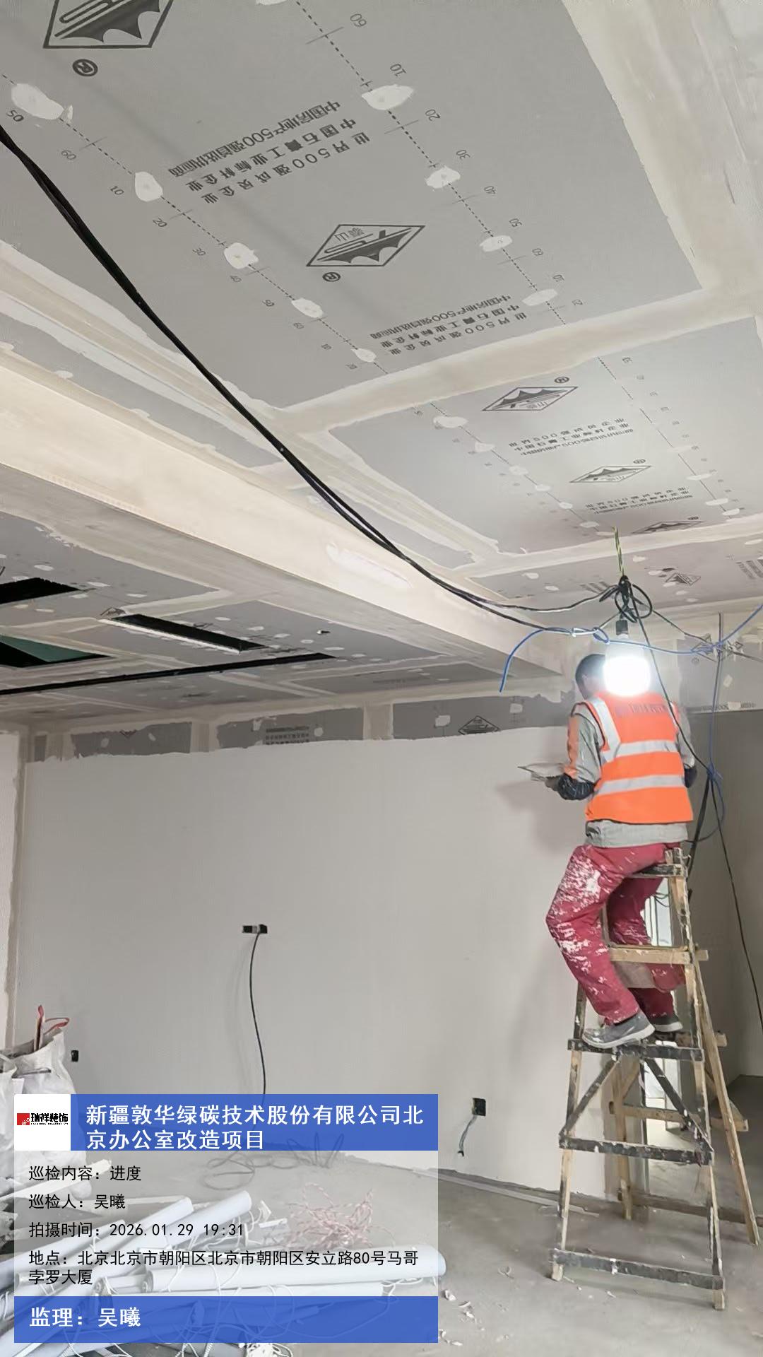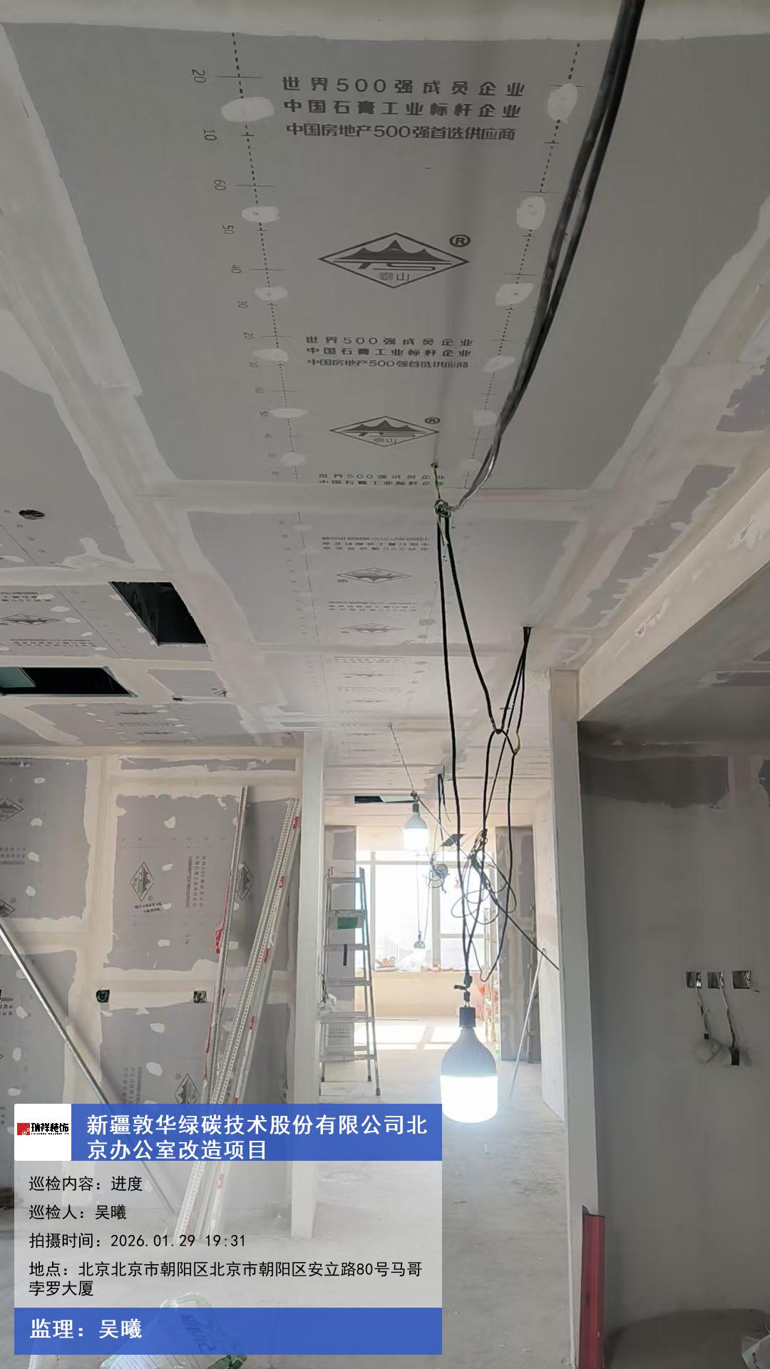 版权声明:本站所有文章除特别标注授权发布外,其他文字内容均为原创,享有著作权保护,未经许可不得以任何形式进行转载(包括且不限于:媒体、网站、公众号等)。本文链接 -> 新疆敦华绿碳技术股份有限公司办公室装修2026年01月29日工程监理巡检