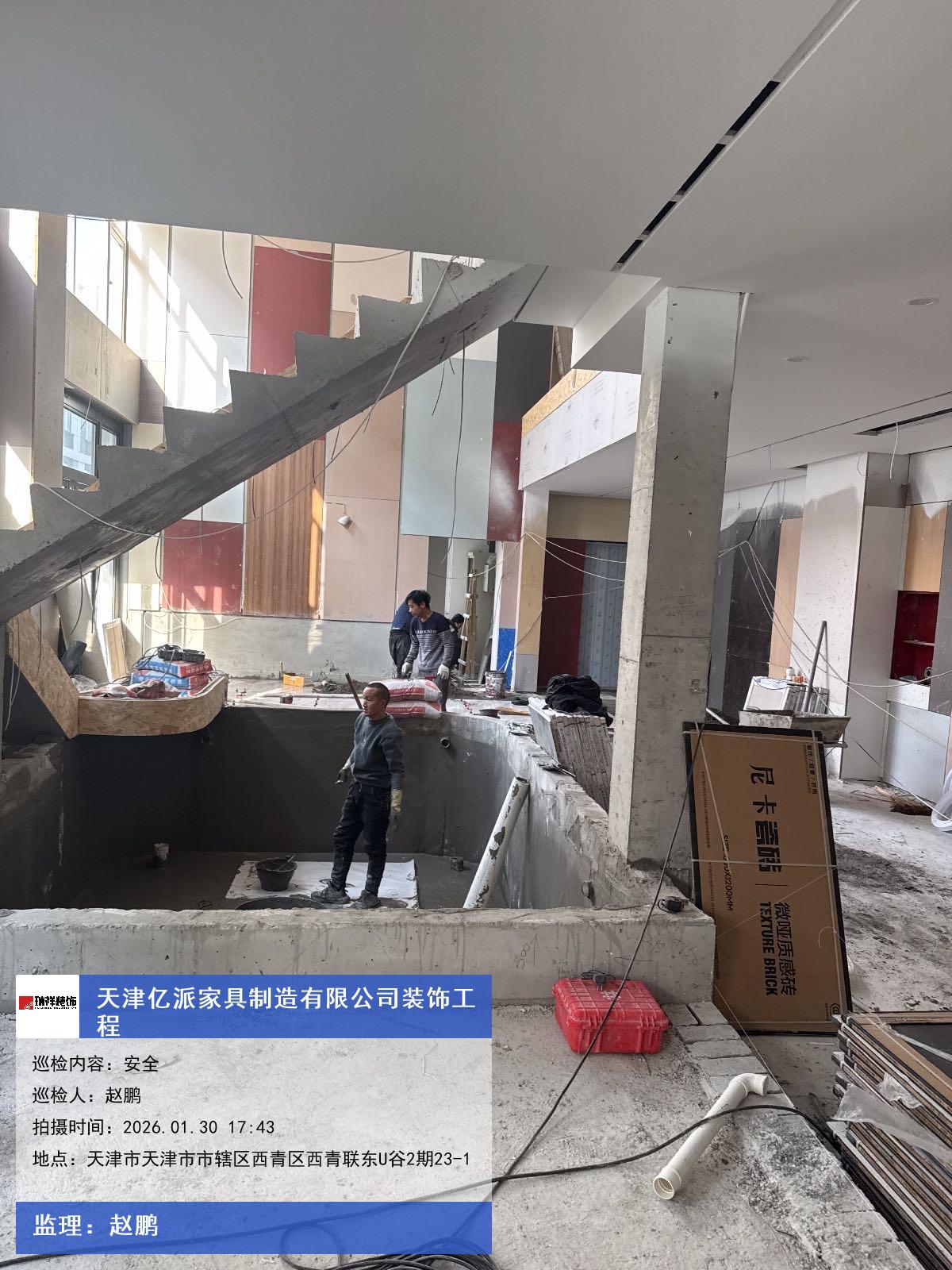 版权声明:本站所有文章除特别标注授权发布外,其他文字内容均为原创,享有著作权保护,未经许可不得以任何形式进行转载(包括且不限于:媒体、网站、公众号等)。本文链接 -> 天津亿派家具制造有限公司写字楼装修设计2026年01月30日工程监理巡检