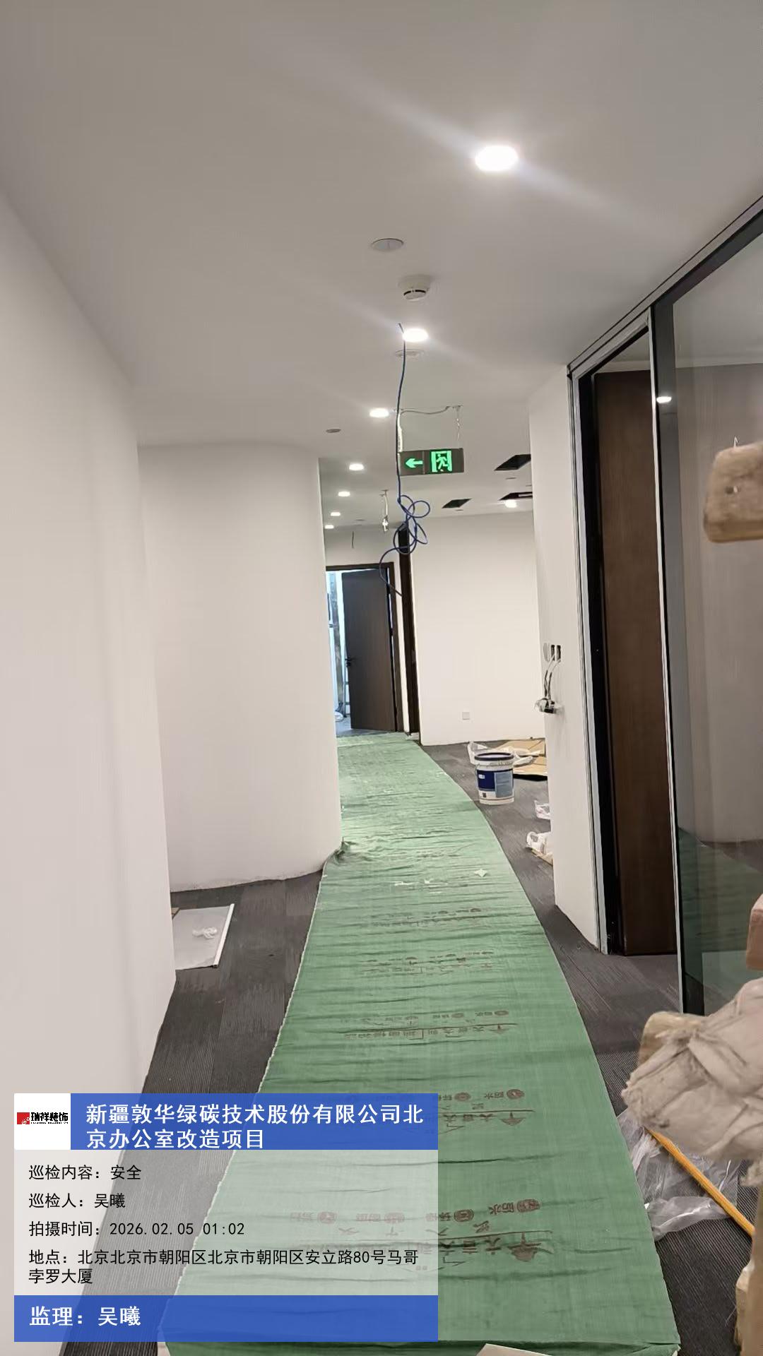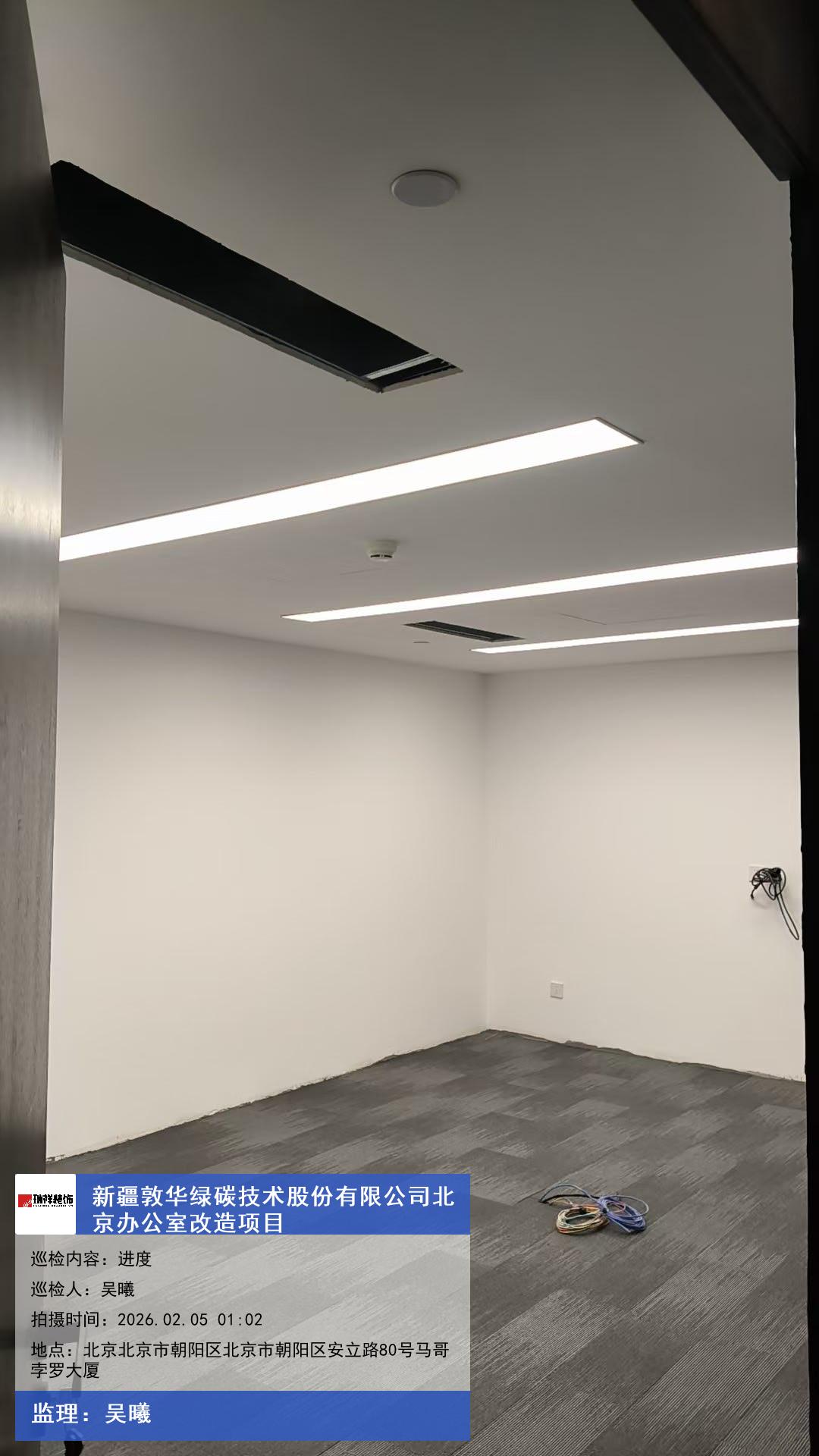 版权声明:本站所有文章除特别标注授权发布外,其他文字内容均为原创,享有著作权保护,未经许可不得以任何形式进行转载(包括且不限于:媒体、网站、公众号等)。本文链接 -> 新疆敦华绿碳技术股份有限公司办公室装修公司2026年02月05日工程监理巡检