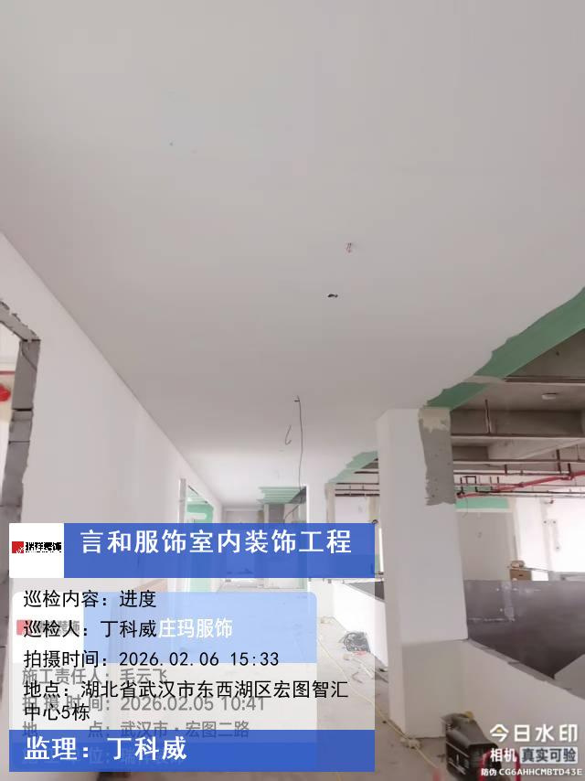 版权声明:本站所有文章除特别标注授权发布外,其他文字内容均为原创,享有著作权保护,未经许可不得以任何形式进行转载(包括且不限于:媒体、网站、公众号等)。本文链接 -> 武汉市硚口区方糖服饰商行银行装修2026年02月06日工程监理巡检