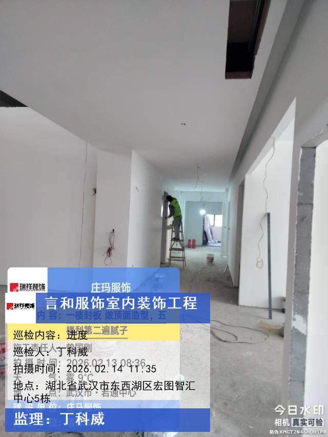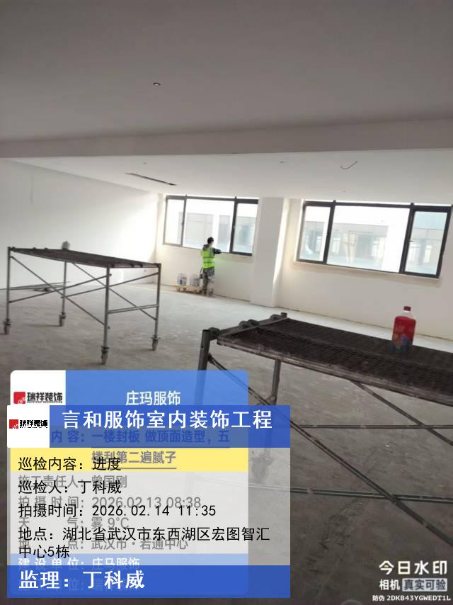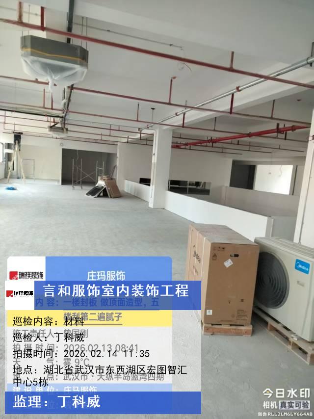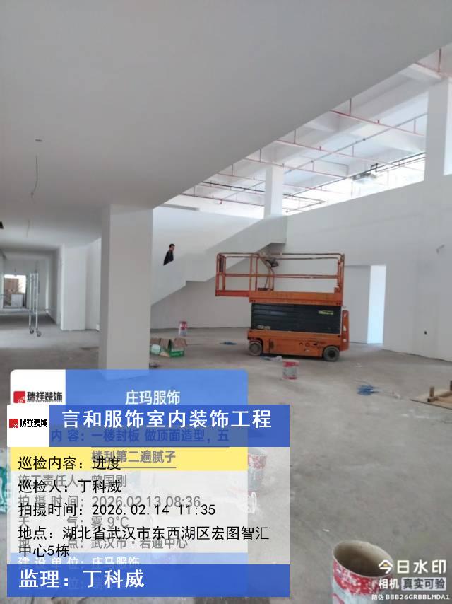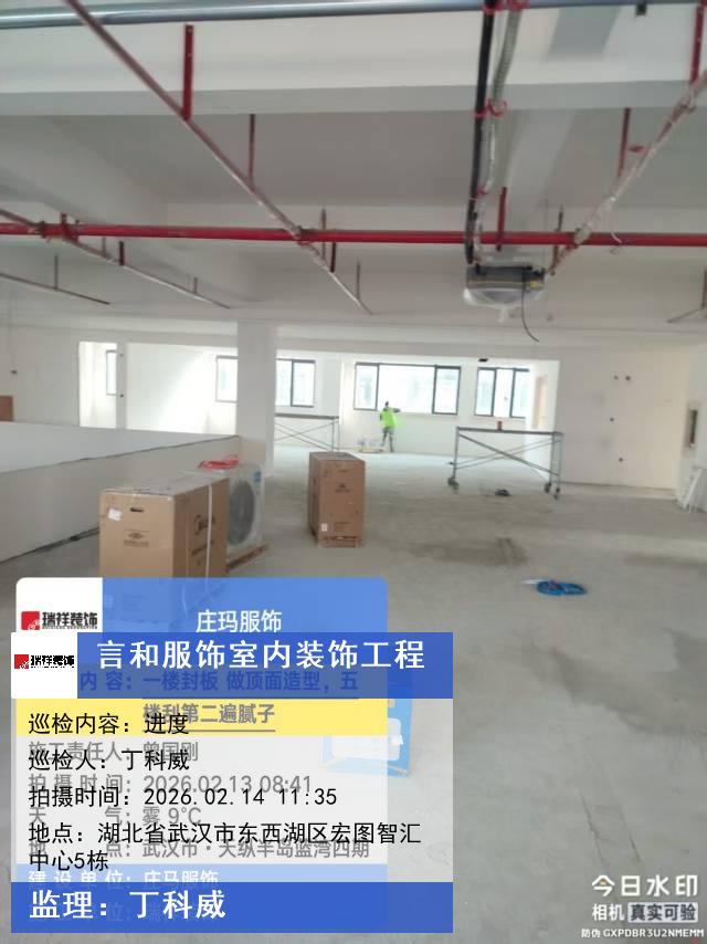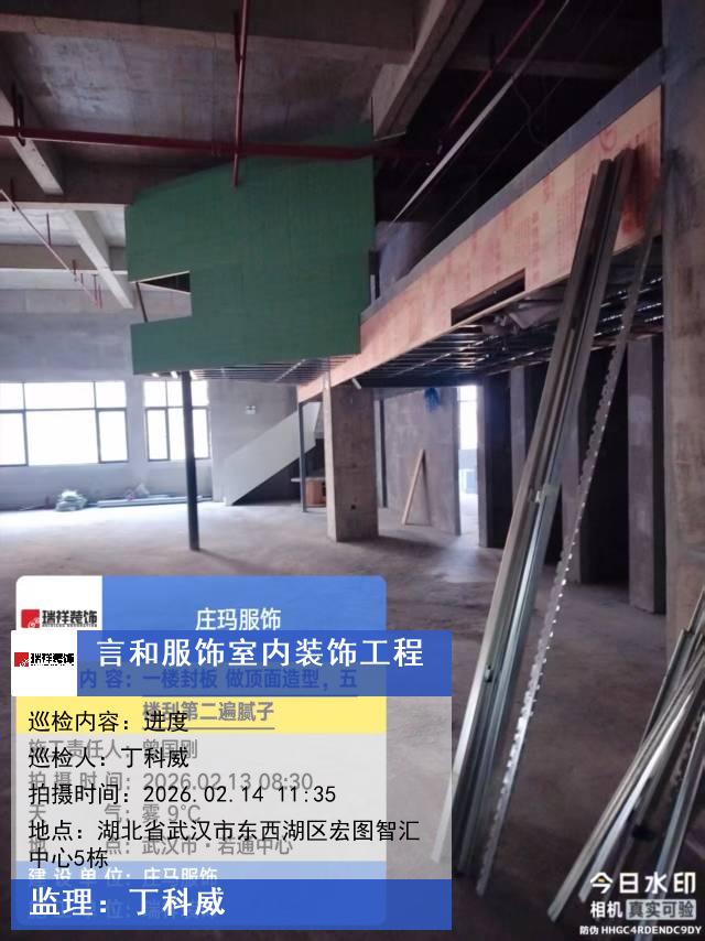 版权声明:本站所有文章除特别标注授权发布外,其他文字内容均为原创,享有著作权保护,未经许可不得以任何形式进行转载(包括且不限于:媒体、网站、公众号等)。本文链接 -> 武汉市硚口区方糖服饰商行办公设计室内装修2026年02月14日工程监理巡检