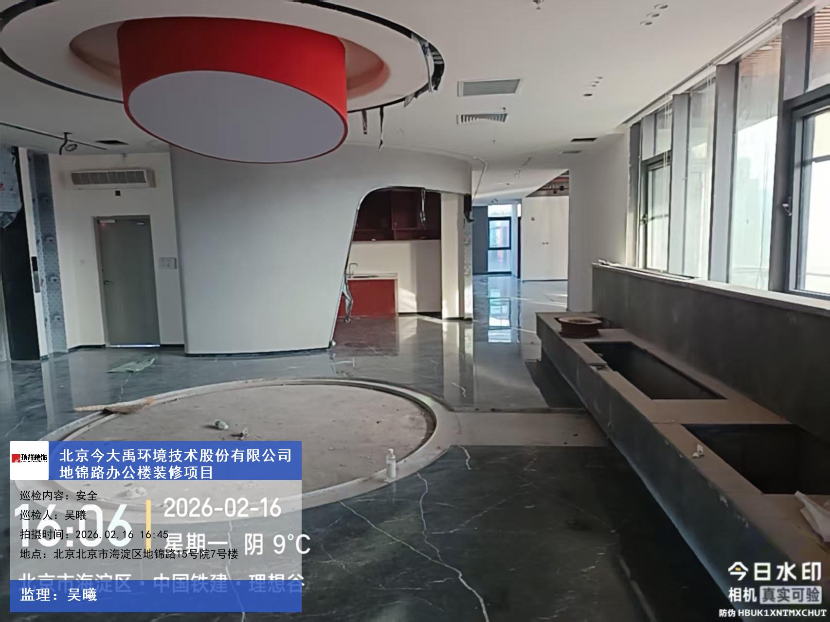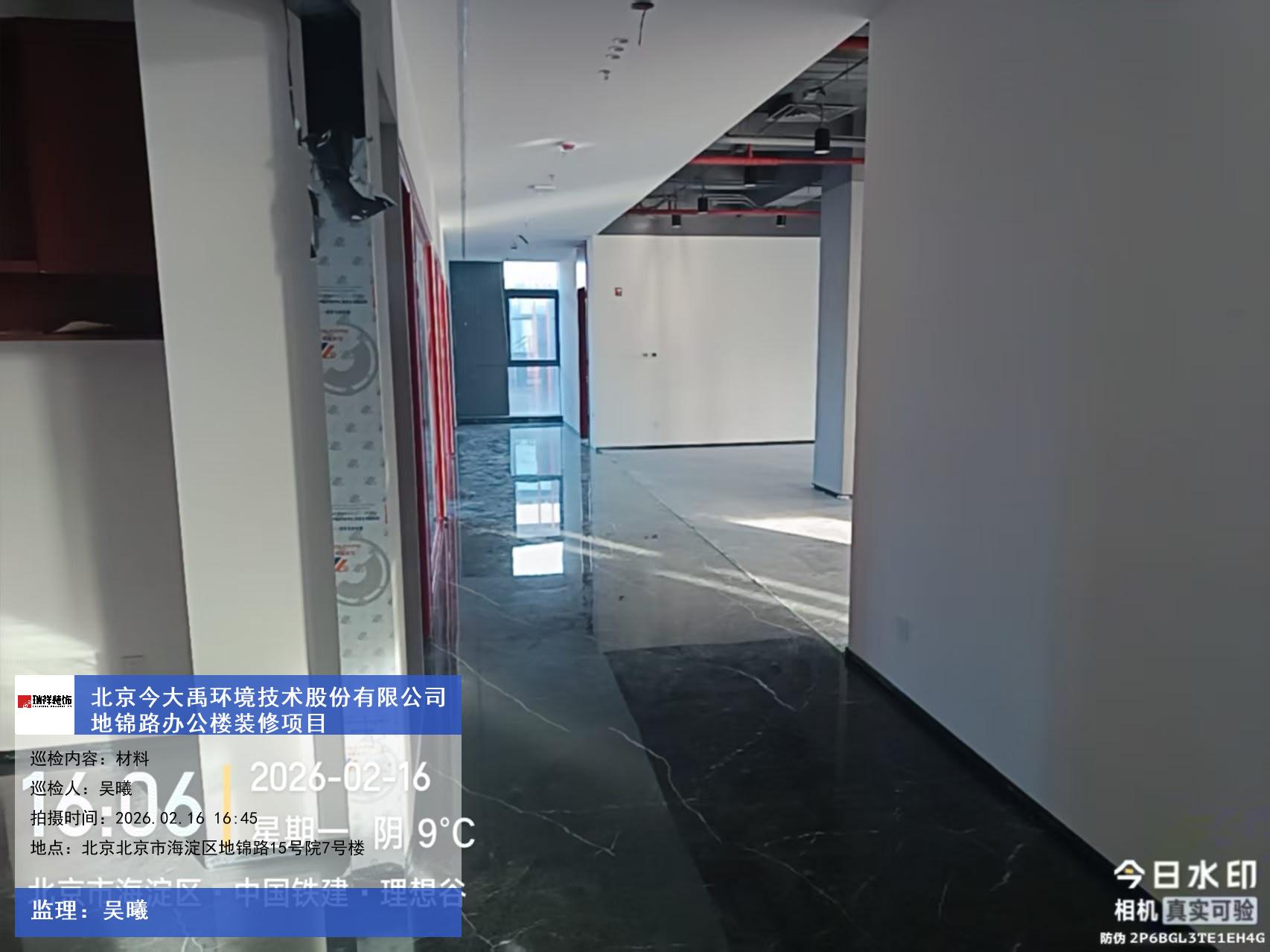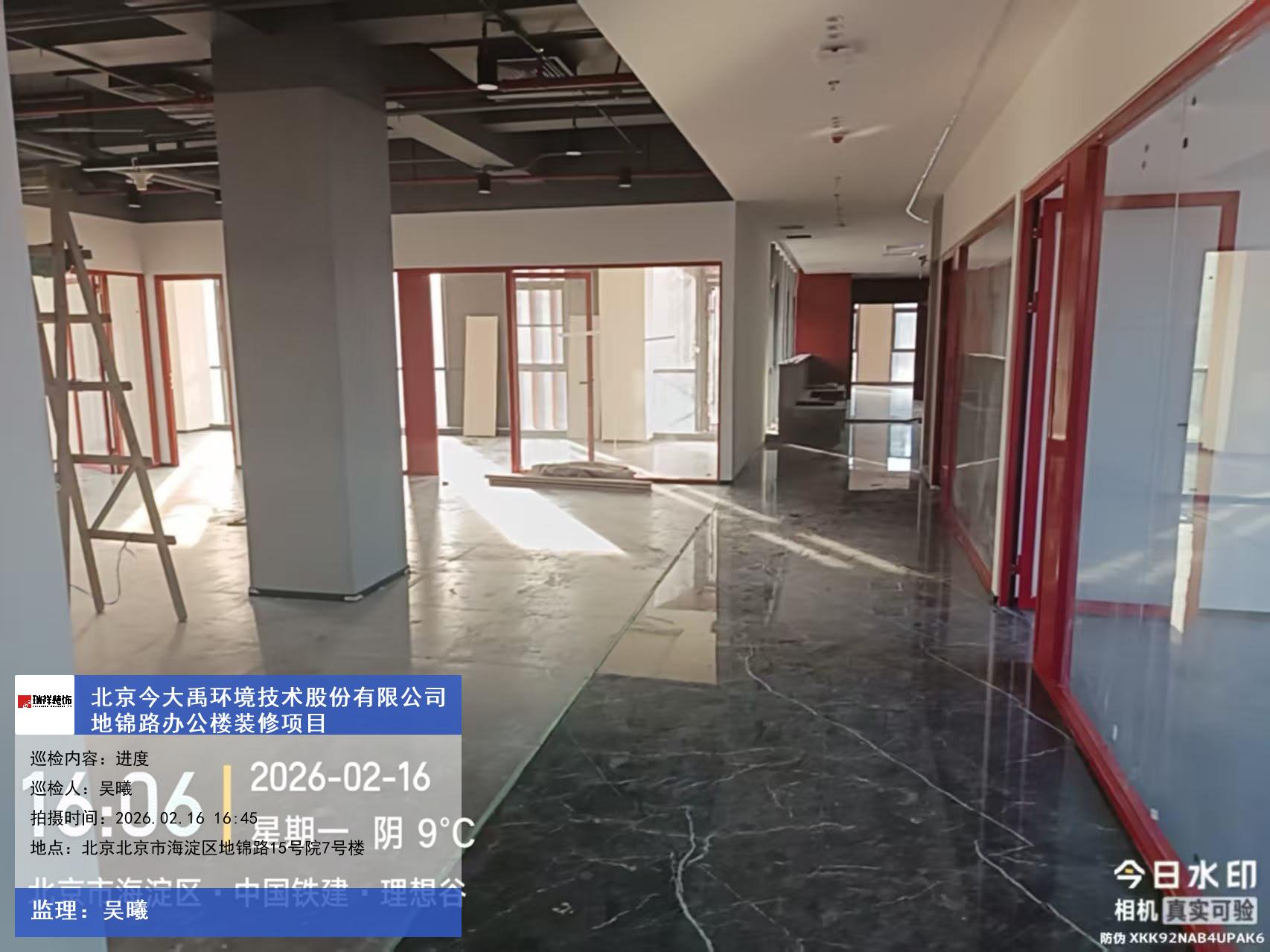 版权声明:本站所有文章除特别标注授权发布外,其他文字内容均为原创,享有著作权保护,未经许可不得以任何形式进行转载(包括且不限于:媒体、网站、公众号等)。本文链接 -> 北京今大禹环境技术股份有限公司办公楼装修公司2026年02月16日工程监理巡检