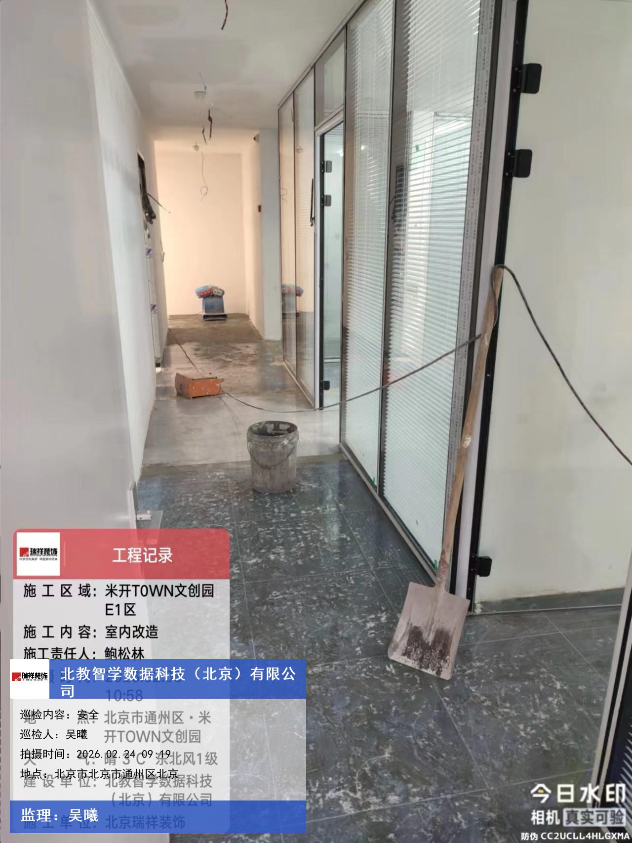 版权声明:本站所有文章除特别标注授权发布外,其他文字内容均为原创,享有著作权保护,未经许可不得以任何形式进行转载(包括且不限于:媒体、网站、公众号等)。本文链接 -> 北教智学数据科技(北京)有限公司专业办公室装修2026年02月24日工程监理巡检