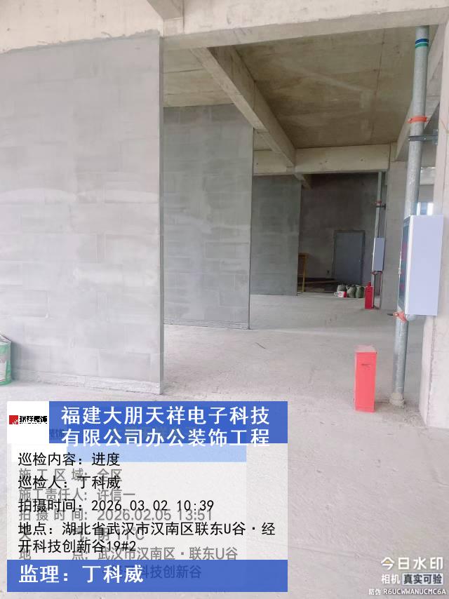 版权声明:本站所有文章除特别标注授权发布外,其他文字内容均为原创,享有著作权保护,未经许可不得以任何形式进行转载(包括且不限于:媒体、网站、公众号等)。本文链接 -> 福建大朋天祥电子科技有限公司装修办公室2026年03月02日工程监理巡检