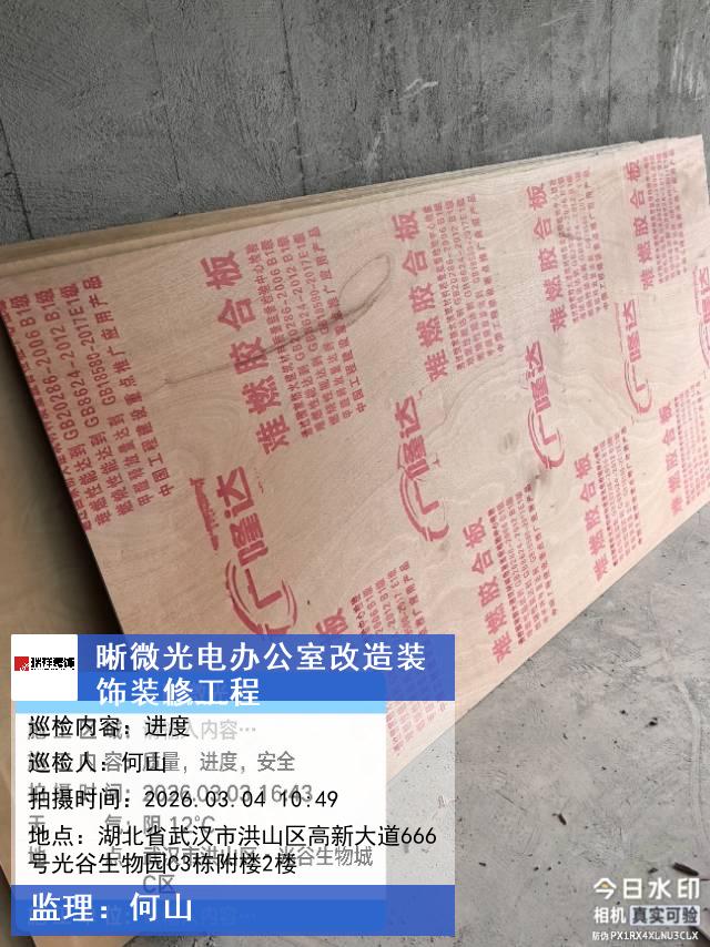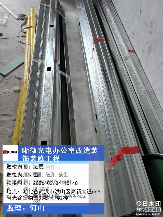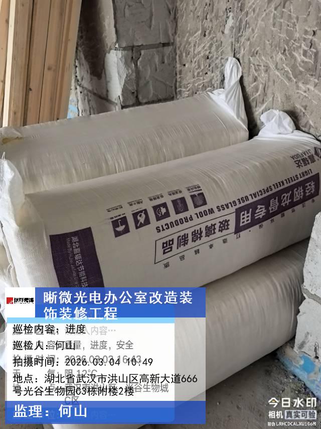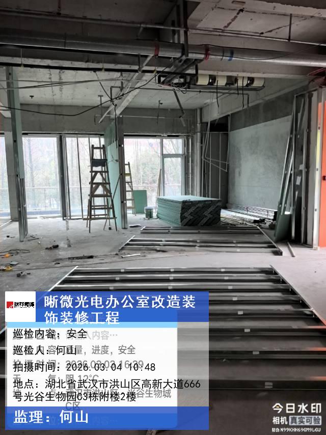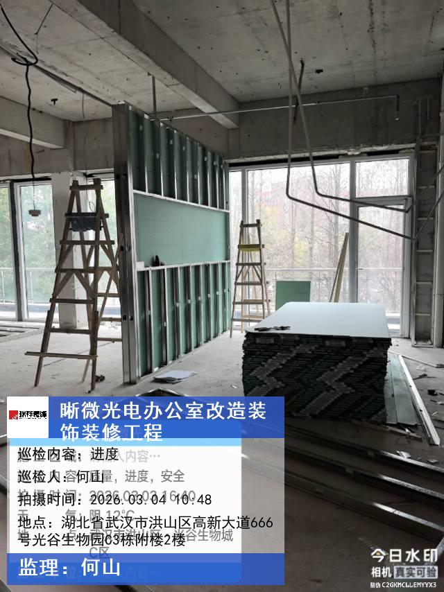 版权声明:本站所有文章除特别标注授权发布外,其他文字内容均为原创,享有著作权保护,未经许可不得以任何形式进行转载(包括且不限于:媒体、网站、公众号等)。本文链接 -> 武汉晰微光电科技有限公司办公楼装修公司2026年03月04日工程监理巡检