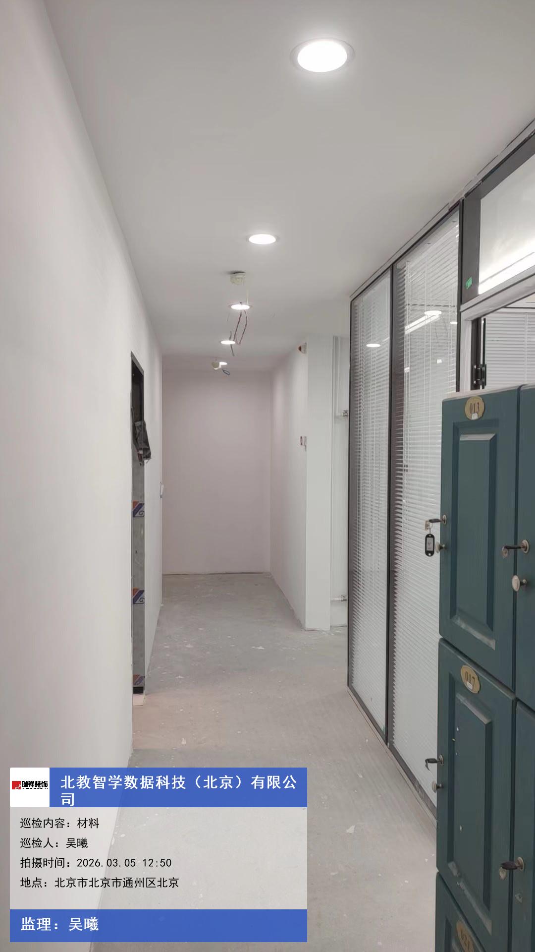 版权声明:本站所有文章除特别标注授权发布外,其他文字内容均为原创,享有著作权保护,未经许可不得以任何形式进行转载(包括且不限于:媒体、网站、公众号等)。本文链接 -> 北教智学数据科技(北京)有限公司办公室装修2026年03月05日工程监理巡检
