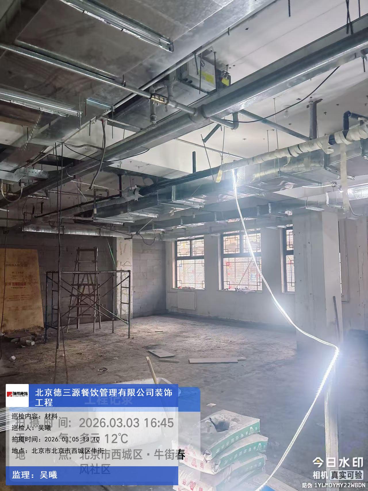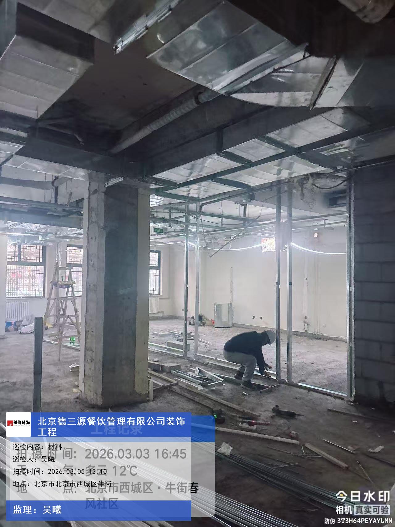 版权声明:本站所有文章除特别标注授权发布外,其他文字内容均为原创,享有著作权保护,未经许可不得以任何形式进行转载(包括且不限于:媒体、网站、公众号等)。本文链接 -> 北京德三源餐饮管理有限公司餐厅装修设计2026年03月05日工程监理巡检