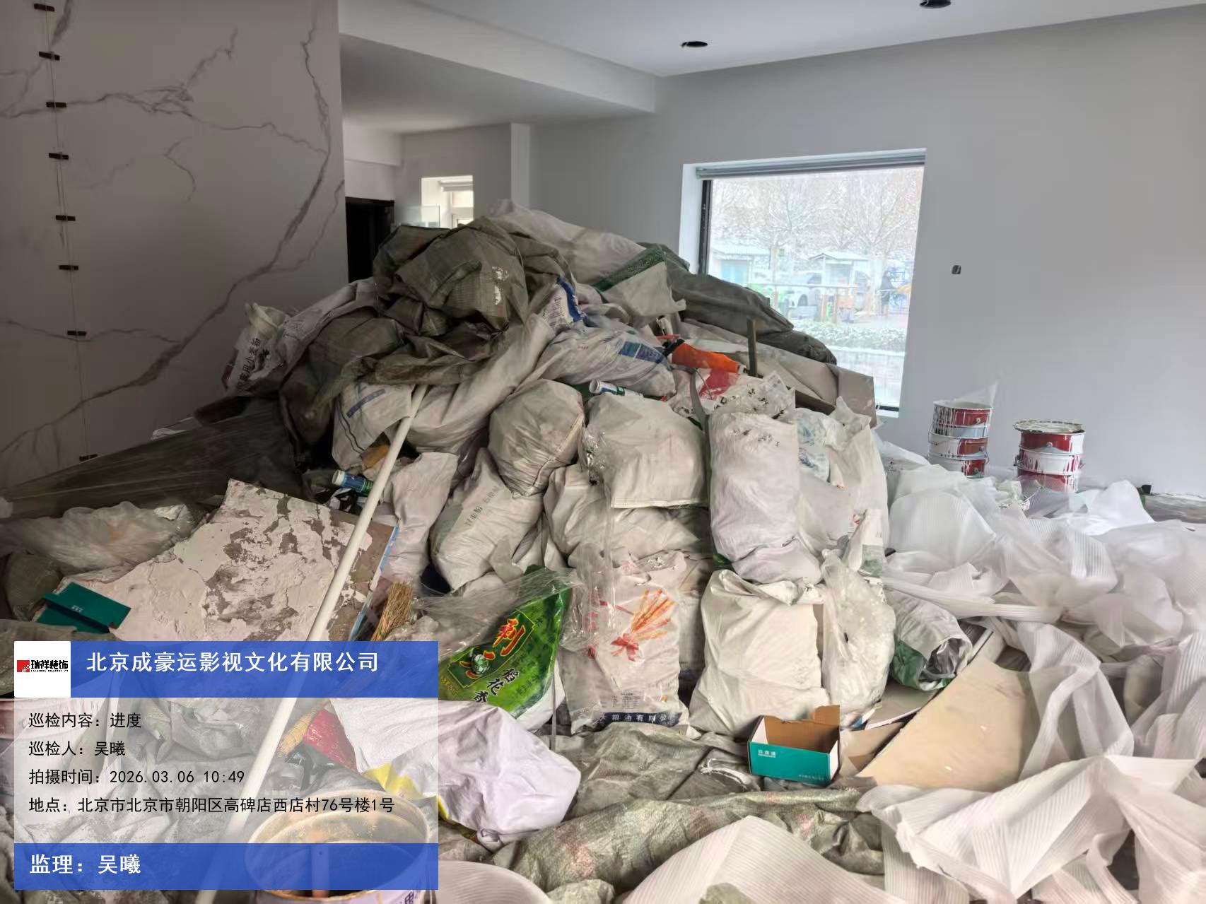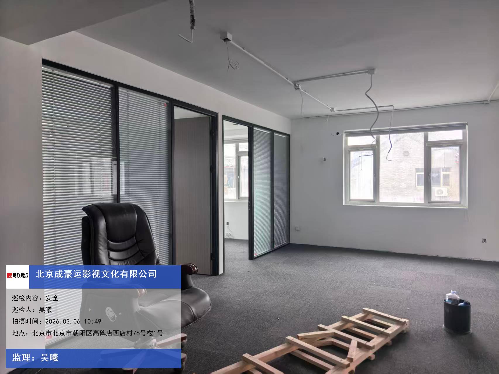 版权声明:本站所有文章除特别标注授权发布外,其他文字内容均为原创,享有著作权保护,未经许可不得以任何形式进行转载(包括且不限于:媒体、网站、公众号等)。本文链接 -> 北京成豪运影视文化有限公司办公空间设计2026年03月06日工程监理巡检