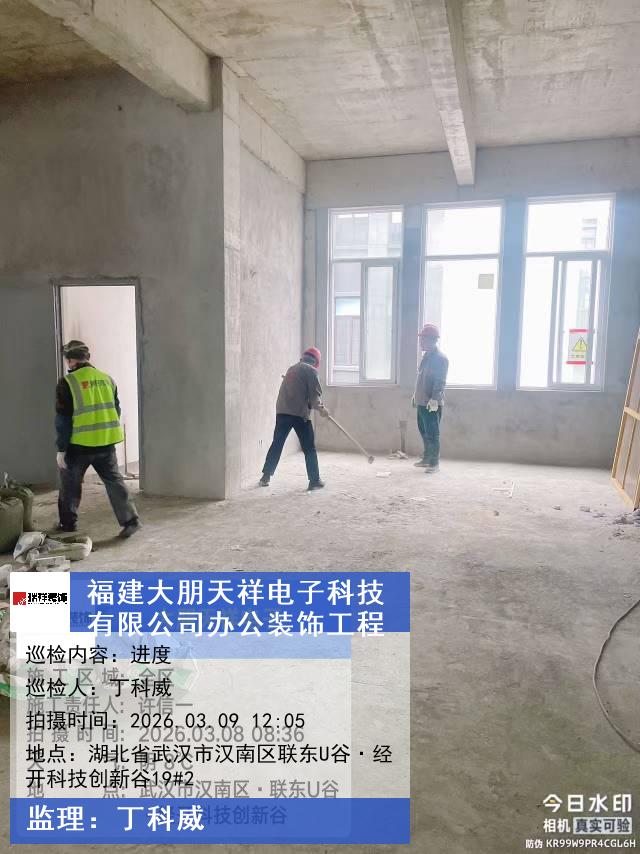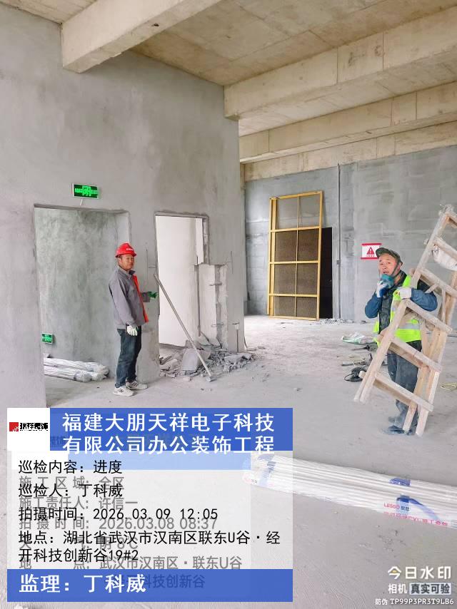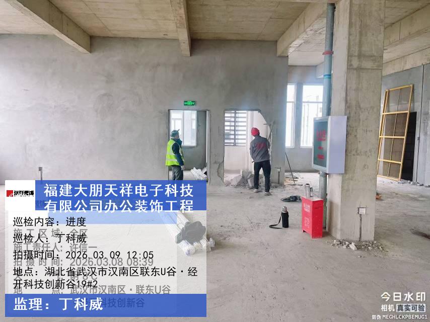 版权声明:本站所有文章除特别标注授权发布外,其他文字内容均为原创,享有著作权保护,未经许可不得以任何形式进行转载(包括且不限于:媒体、网站、公众号等)。本文链接 -> 福建大朋天祥电子科技有限公司办公空间装修2026年03月09日工程监理巡检