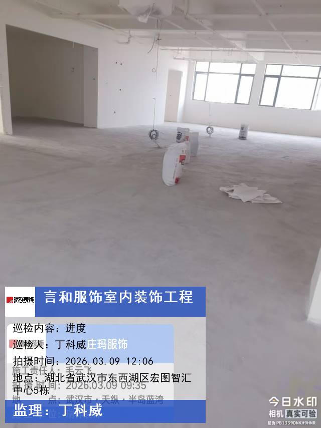 版权声明:本站所有文章除特别标注授权发布外,其他文字内容均为原创,享有著作权保护,未经许可不得以任何形式进行转载(包括且不限于:媒体、网站、公众号等)。本文链接 -> 武汉市硚口区方糖服饰商行办公楼装修2026年03月09日工程监理巡检
