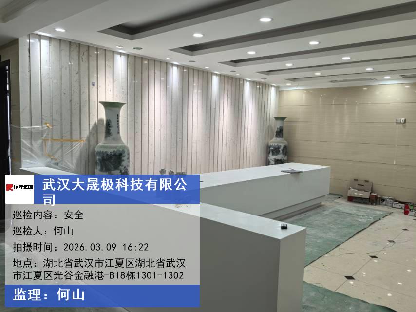 版权声明:本站所有文章除特别标注授权发布外,其他文字内容均为原创,享有著作权保护,未经许可不得以任何形式进行转载(包括且不限于:媒体、网站、公众号等)。本文链接 -> 武汉大晟极科技有限公司办公楼装修公司2026年03月09日工程监理巡检