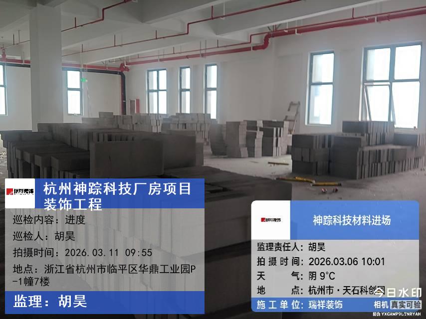 版权声明:本站所有文章除特别标注授权发布外,其他文字内容均为原创,享有著作权保护,未经许可不得以任何形式进行转载(包括且不限于:媒体、网站、公众号等)。本文链接 -> 杭州神踪科技有限公司写字楼装修2026年03月11日工程监理巡检