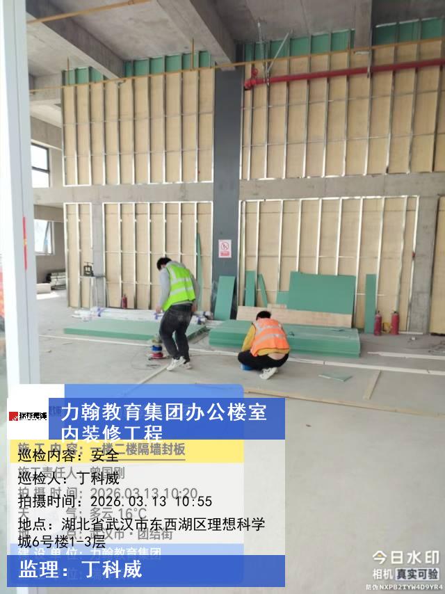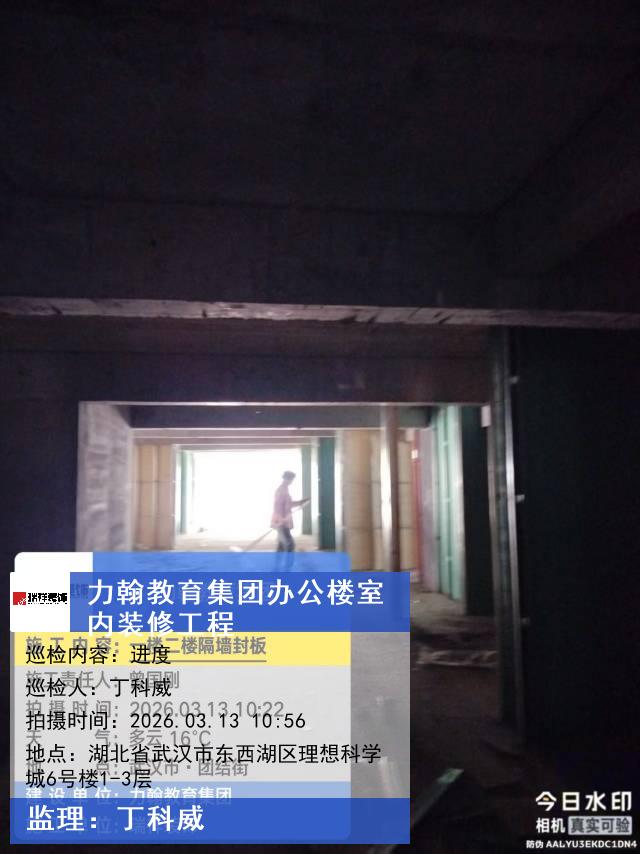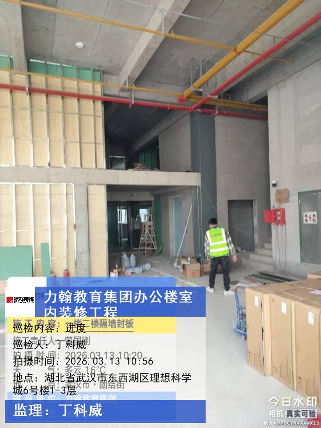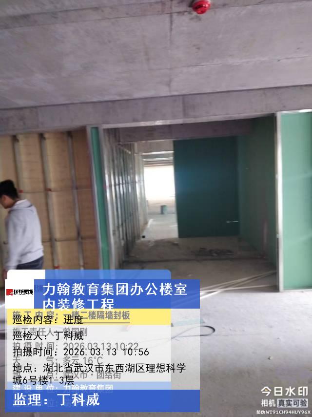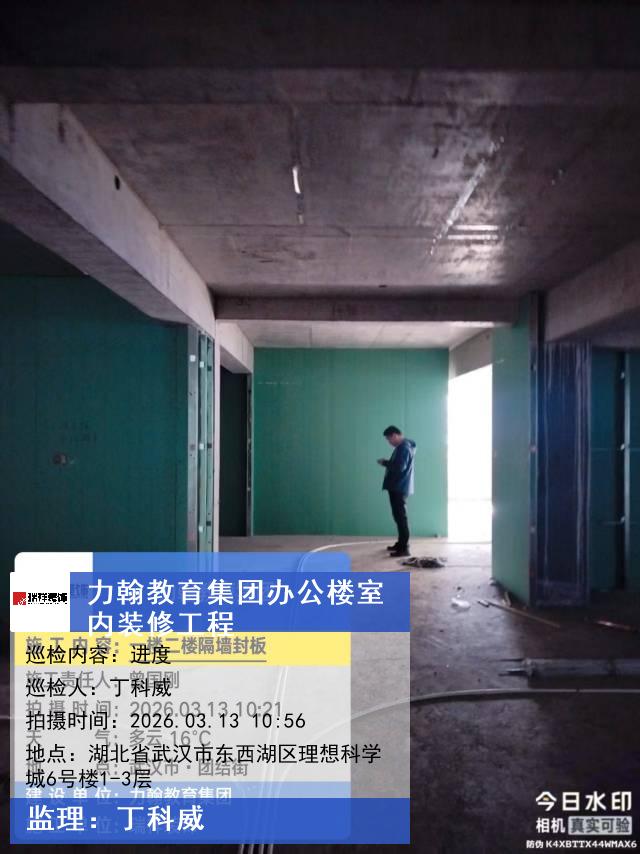 版权声明:本站所有文章除特别标注授权发布外,其他文字内容均为原创,享有著作权保护,未经许可不得以任何形式进行转载(包括且不限于:媒体、网站、公众号等)。本文链接 -> 武汉力翰科普发展有限公司写字楼装修2026年03月13日工程监理巡检