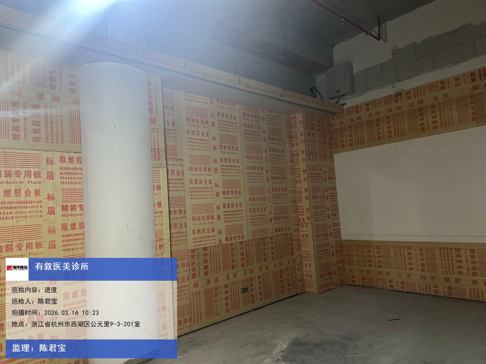 版权声明:本站所有文章除特别标注授权发布外,其他文字内容均为原创,享有著作权保护,未经许可不得以任何形式进行转载(包括且不限于:媒体、网站、公众号等)。本文链接 -> 有叙医美诊所商业装修2026年03月16日工程监理巡检