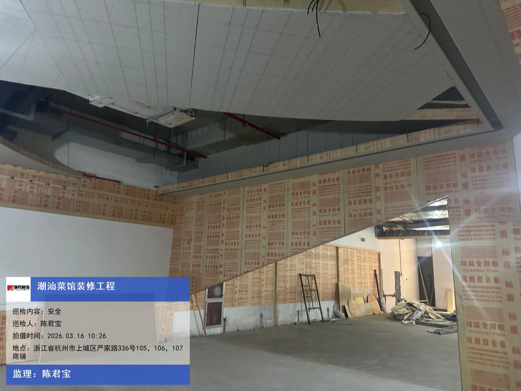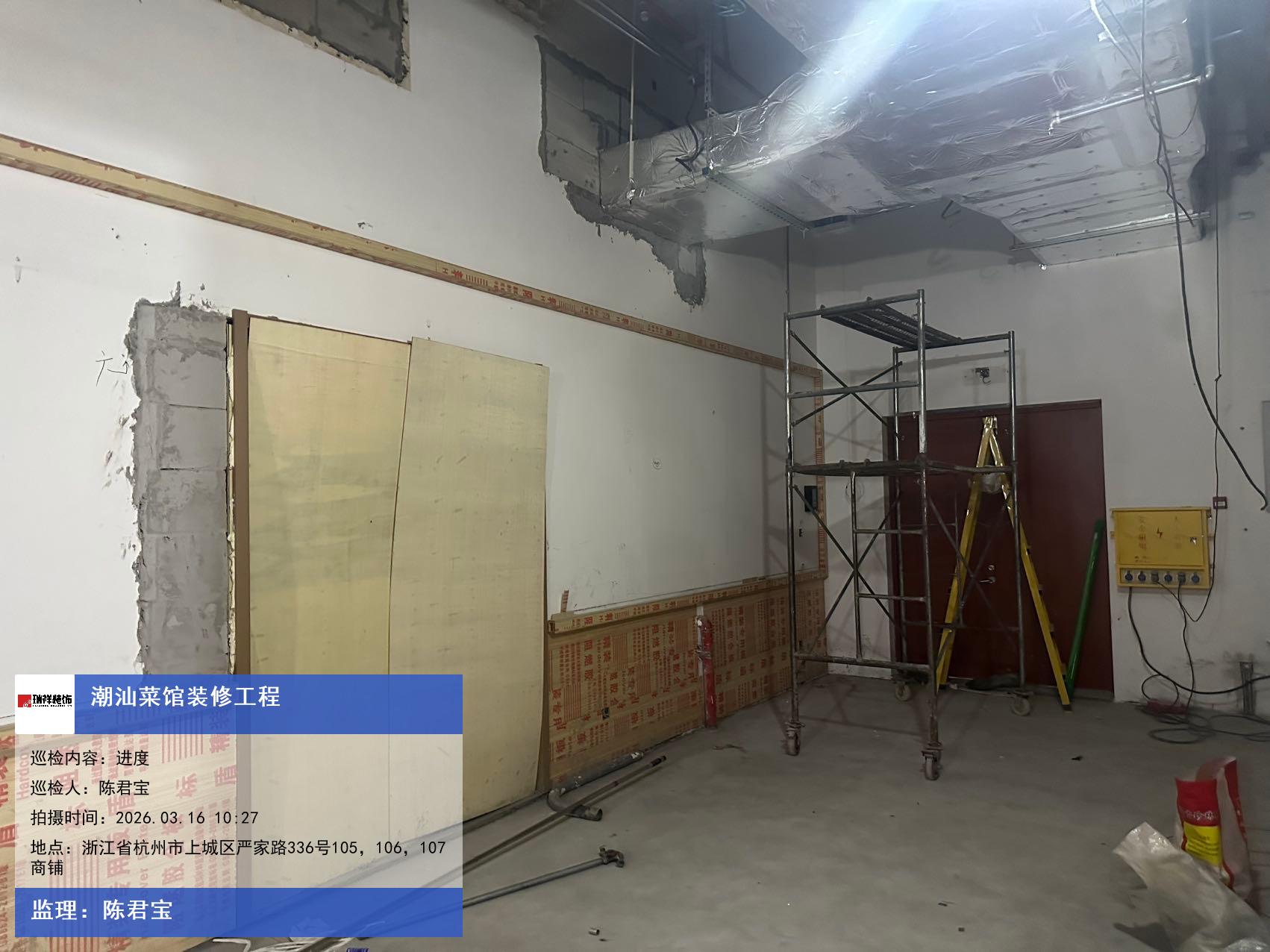 版权声明:本站所有文章除特别标注授权发布外,其他文字内容均为原创,享有著作权保护,未经许可不得以任何形式进行转载(包括且不限于:媒体、网站、公众号等)。本文链接 -> 刘丽秋婚宴酒楼装修2026年03月16日工程监理巡检