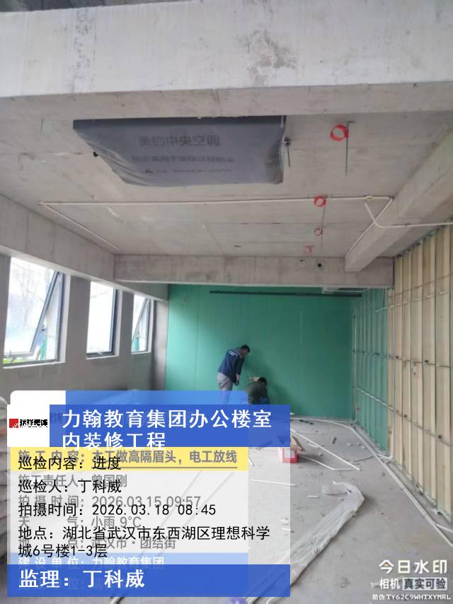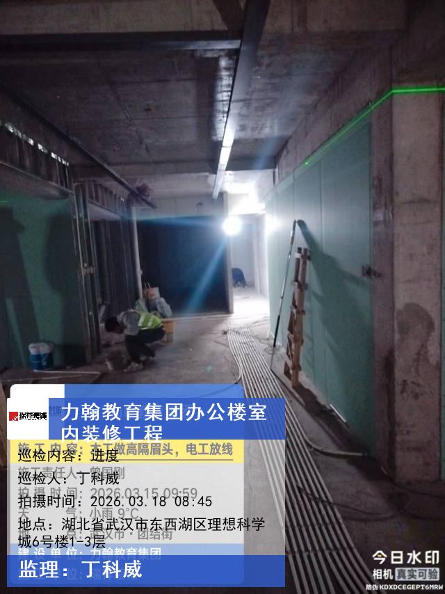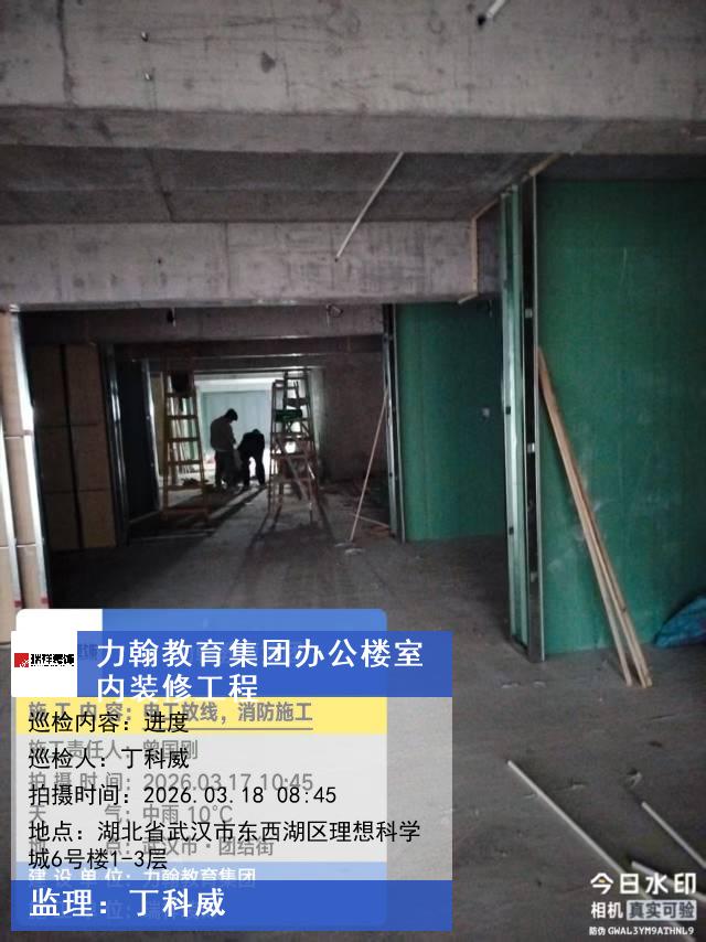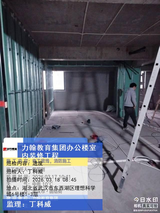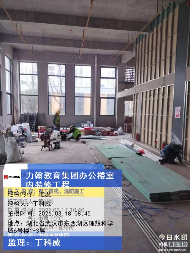 版权声明:本站所有文章除特别标注授权发布外,其他文字内容均为原创,享有著作权保护,未经许可不得以任何形式进行转载(包括且不限于:媒体、网站、公众号等)。本文链接 -> 武汉力翰科普发展有限公司办公楼装修公司2026年03月18日工程监理巡检