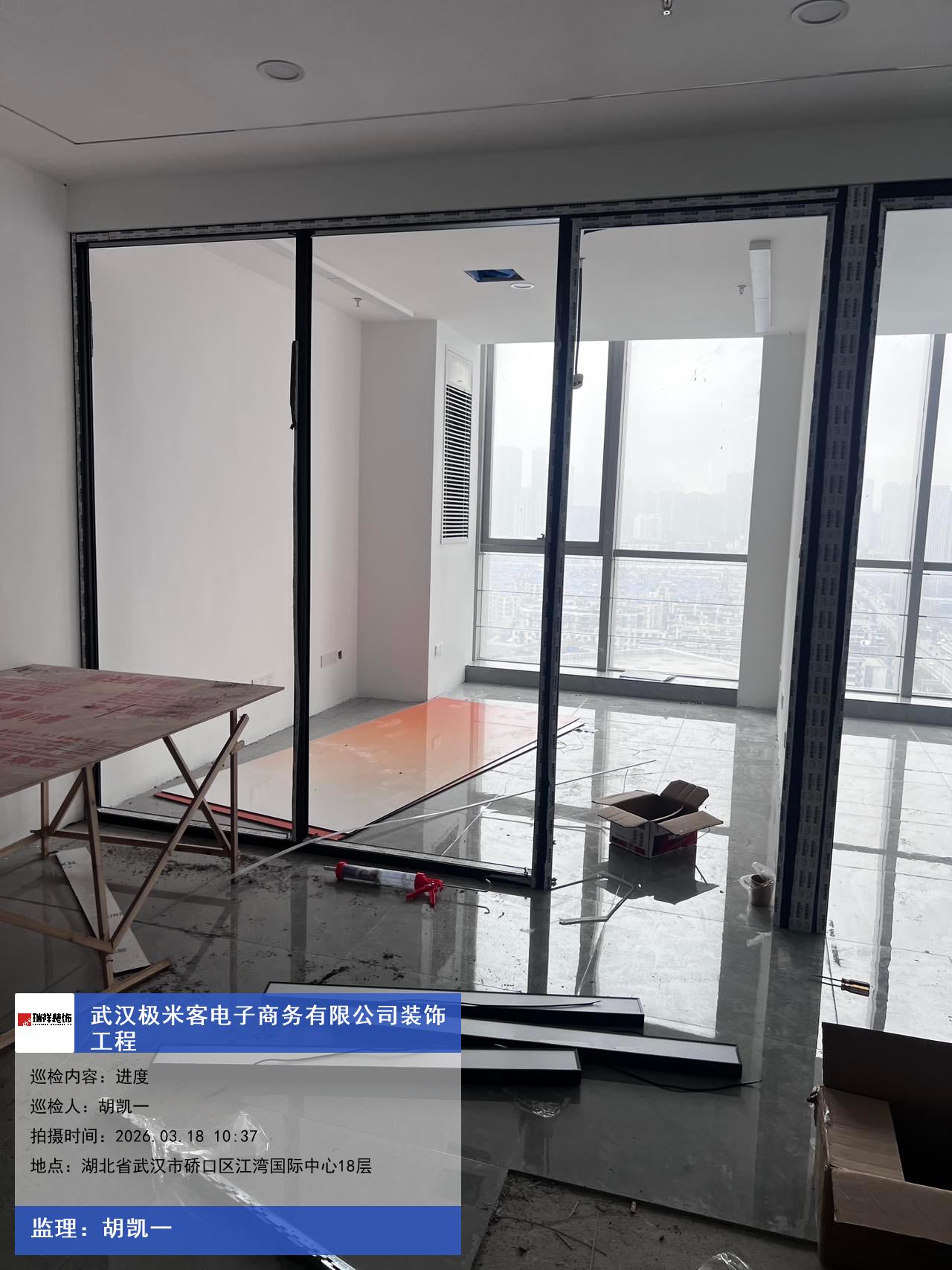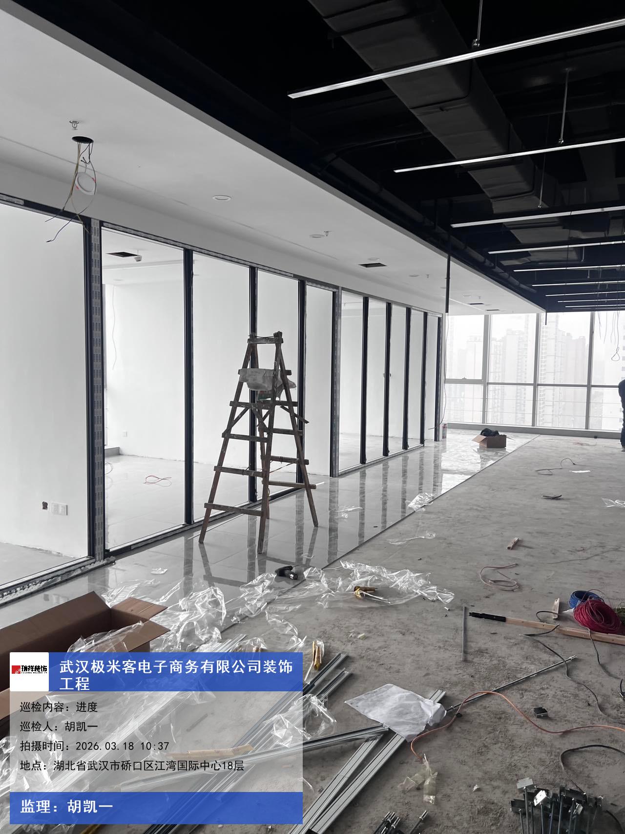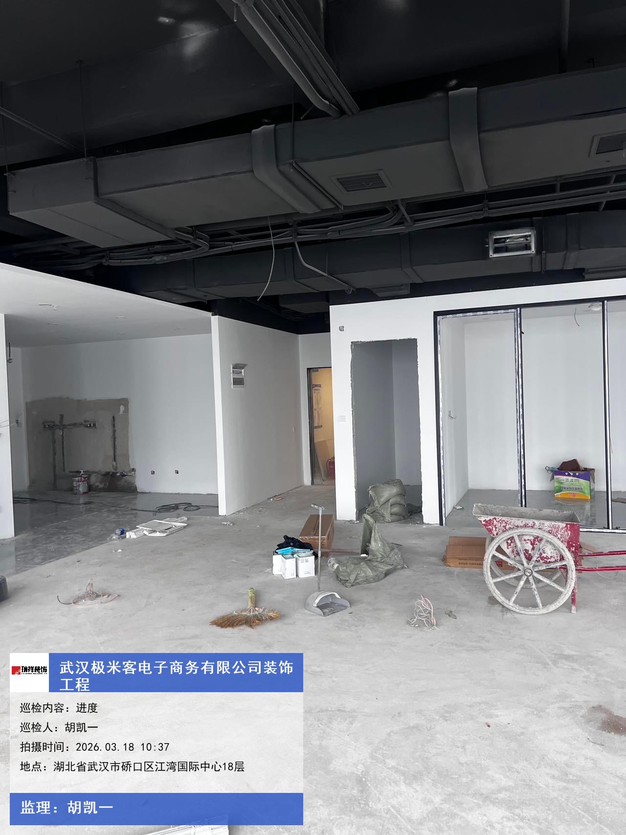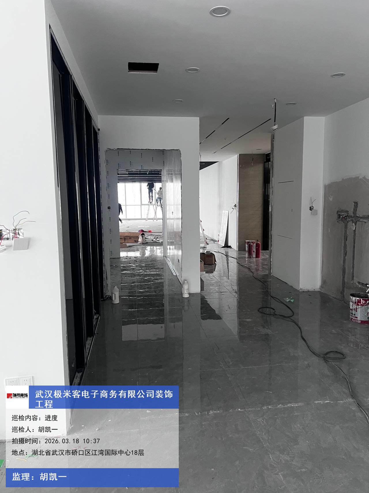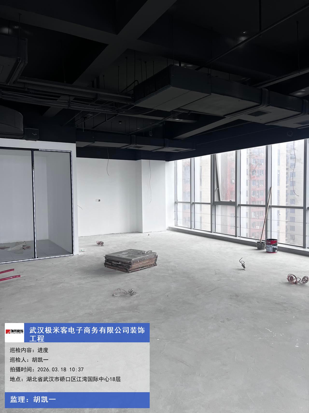 版权声明:本站所有文章除特别标注授权发布外,其他文字内容均为原创,享有著作权保护,未经许可不得以任何形式进行转载(包括且不限于:媒体、网站、公众号等)。本文链接 -> 武汉极米客电子商务有限公司写字楼装修2026年03月18日工程监理巡检