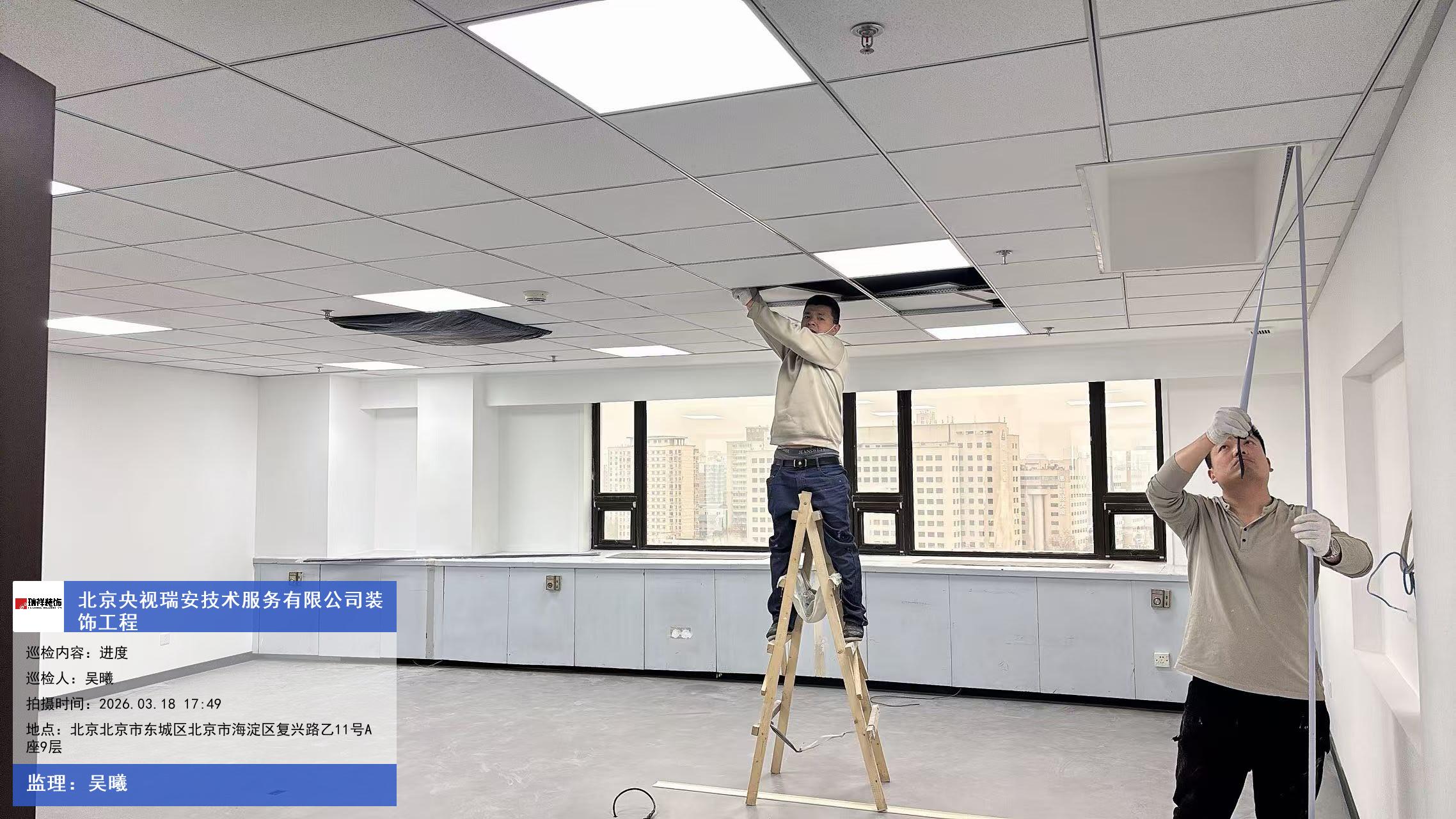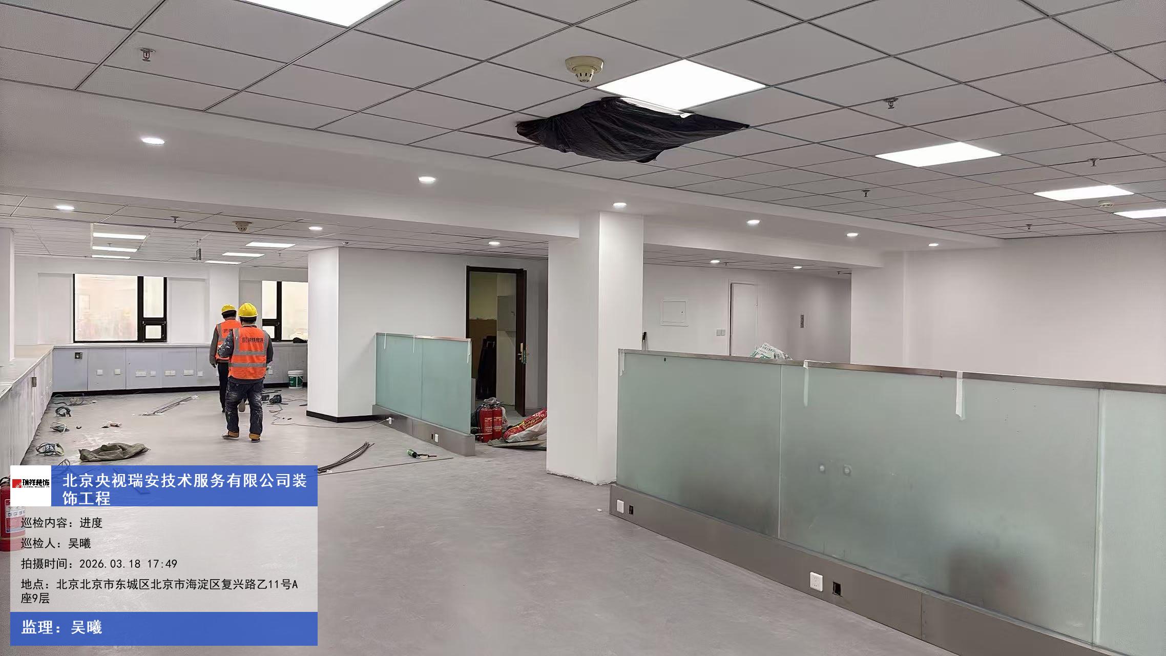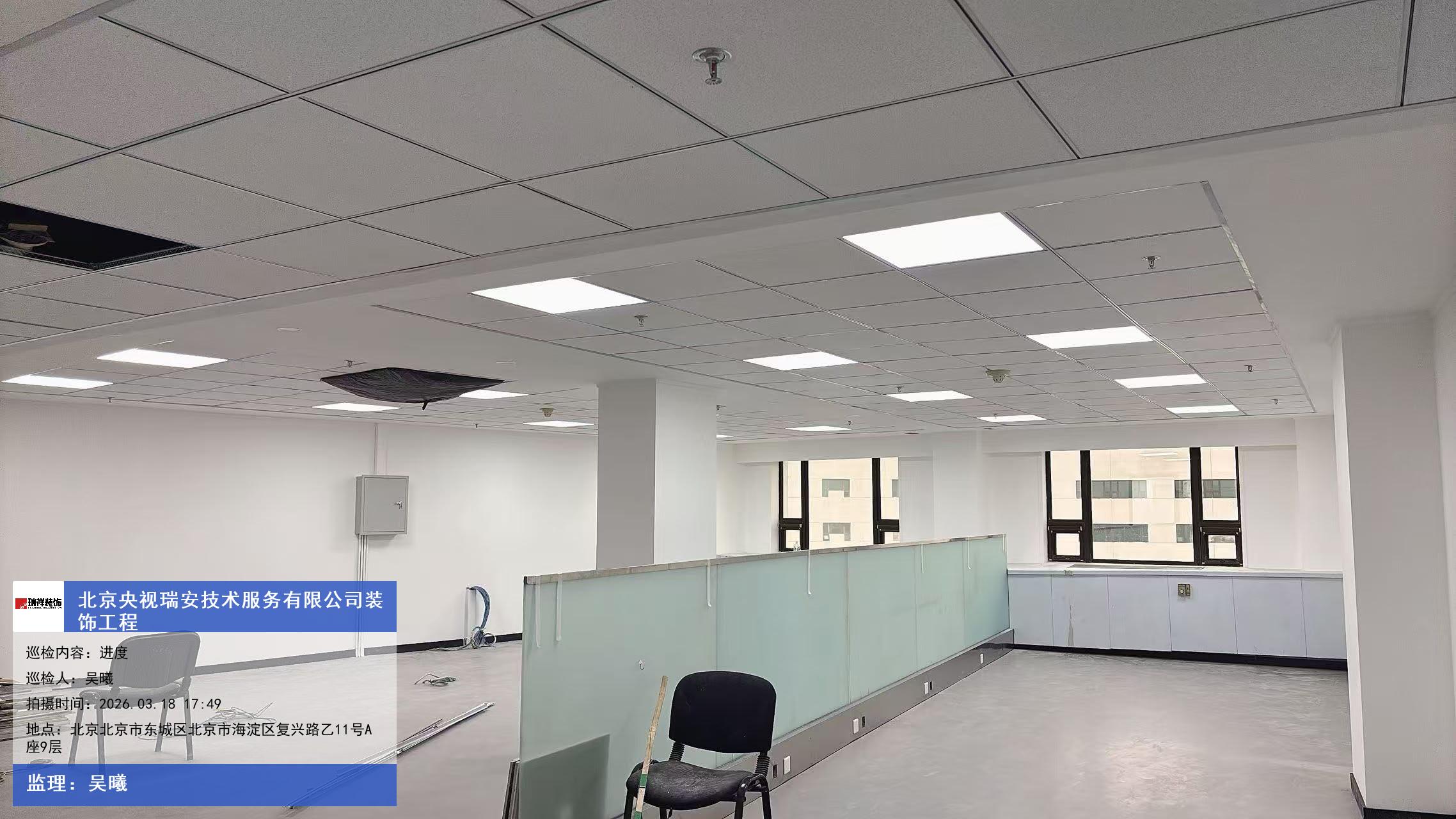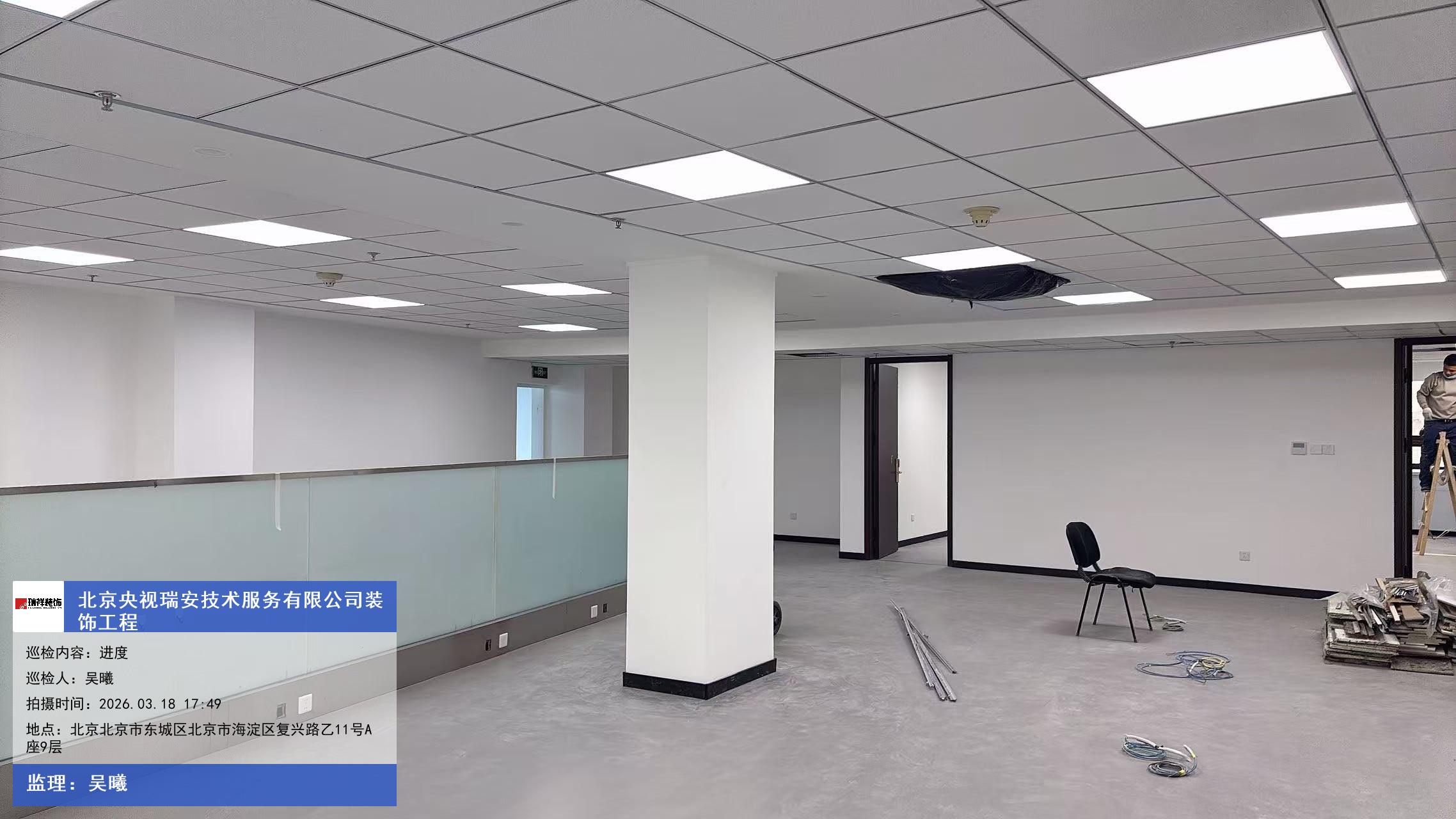 版权声明:本站所有文章除特别标注授权发布外,其他文字内容均为原创,享有著作权保护,未经许可不得以任何形式进行转载(包括且不限于:媒体、网站、公众号等)。本文链接 -> 北京央视瑞安技术服务有限公司办公设计室内装修2026年03月18日工程监理巡检