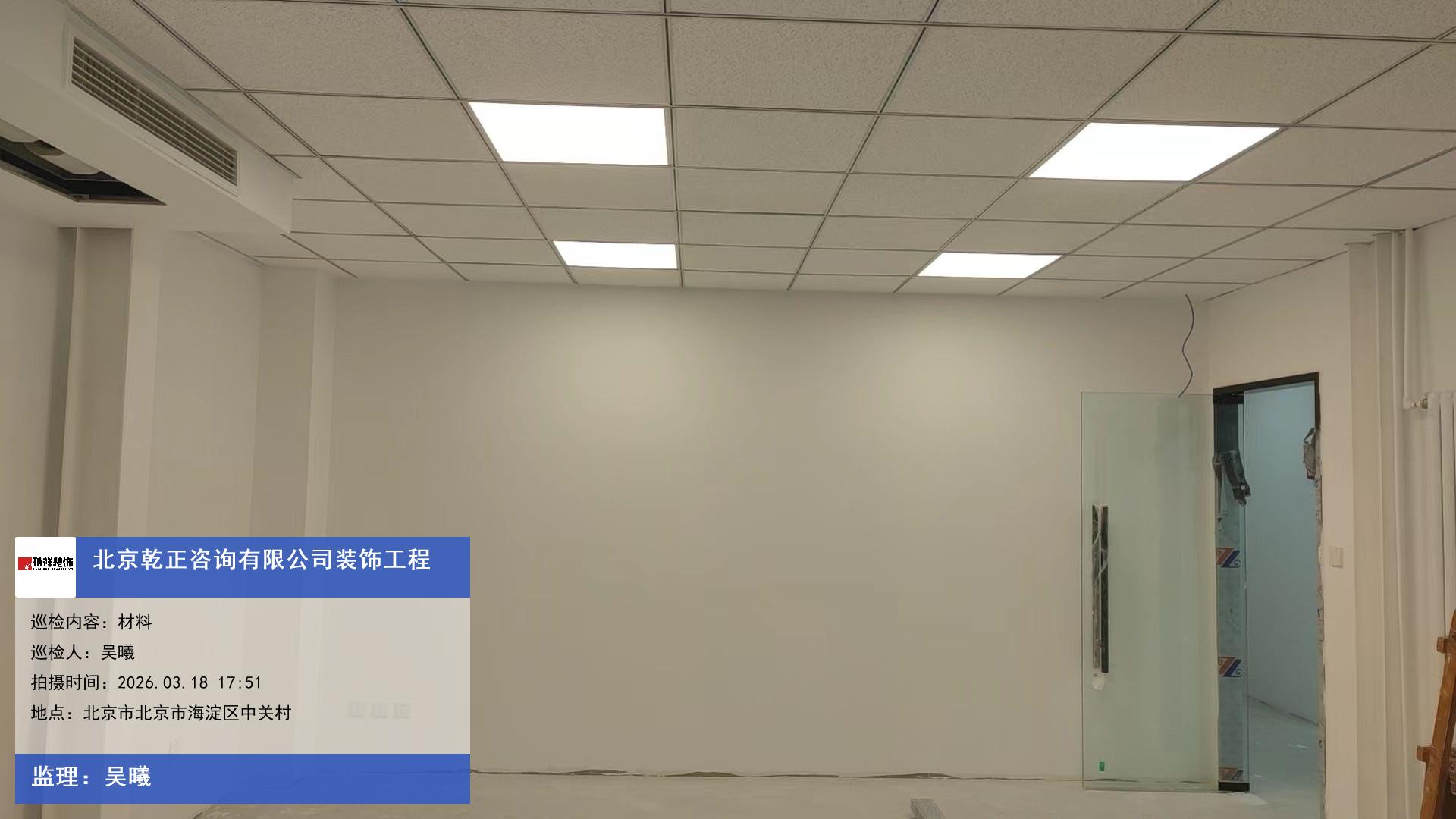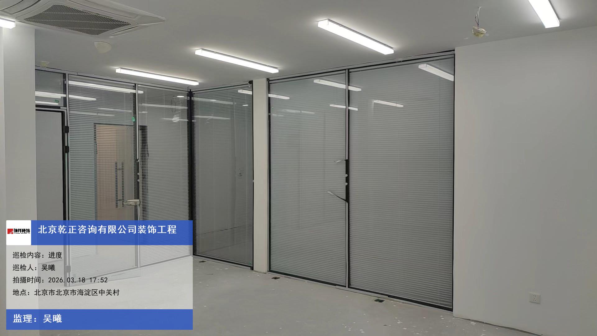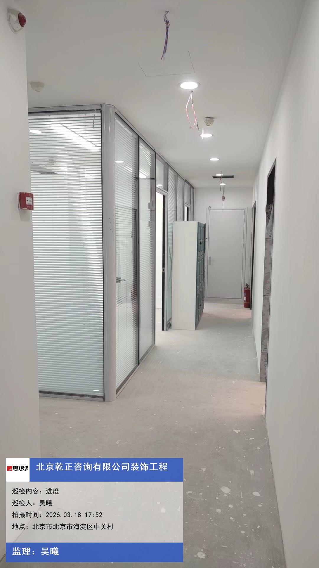 版权声明:本站所有文章除特别标注授权发布外,其他文字内容均为原创,享有著作权保护,未经许可不得以任何形式进行转载(包括且不限于:媒体、网站、公众号等)。本文链接 -> 北京乾正咨询有限公司办公空间装修2026年03月18日工程监理巡检