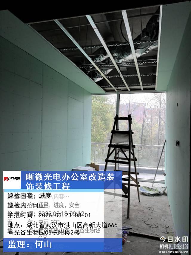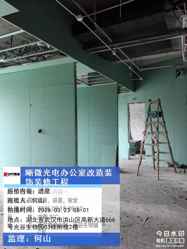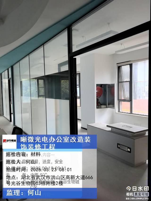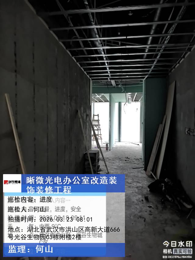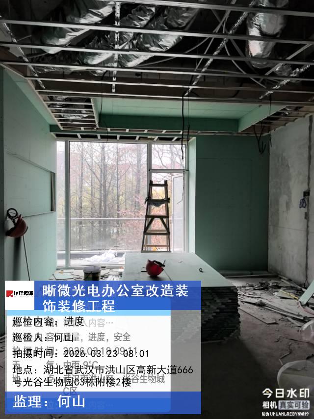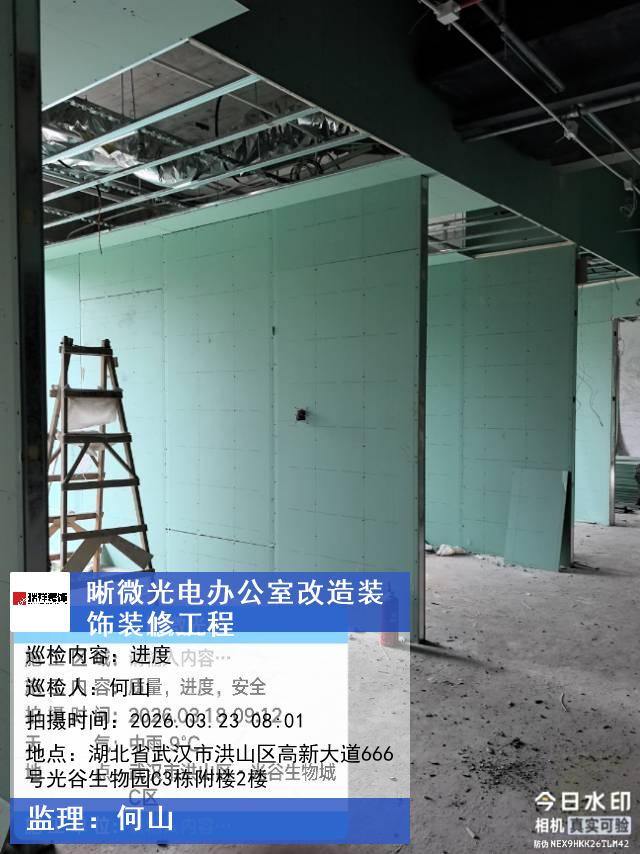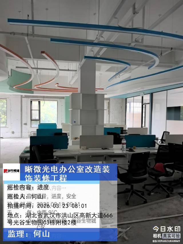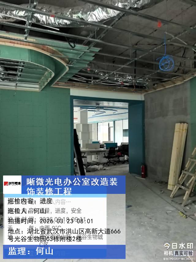 版权声明:本站所有文章除特别标注授权发布外,其他文字内容均为原创,享有著作权保护,未经许可不得以任何形式进行转载(包括且不限于:媒体、网站、公众号等)。本文链接 -> 武汉晰微光电科技有限公司办公室装修公司2026年03月23日工程监理巡检