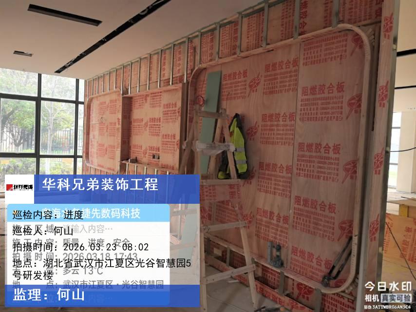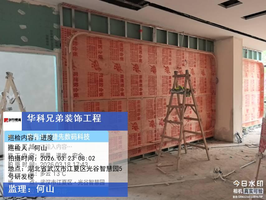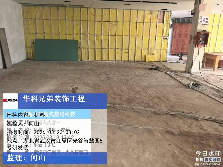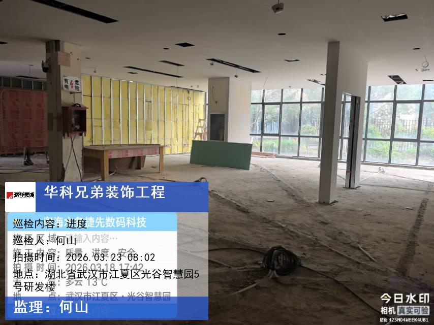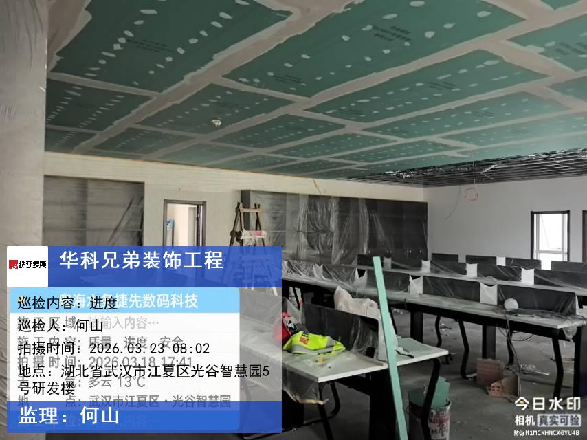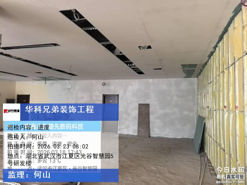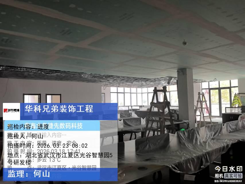 版权声明:本站所有文章除特别标注授权发布外,其他文字内容均为原创,享有著作权保护,未经许可不得以任何形式进行转载(包括且不限于:媒体、网站、公众号等)。本文链接 -> 武汉市华科兄弟数字技术有限公司装修公司办公室2026年03月23日工程监理巡检