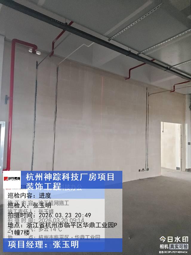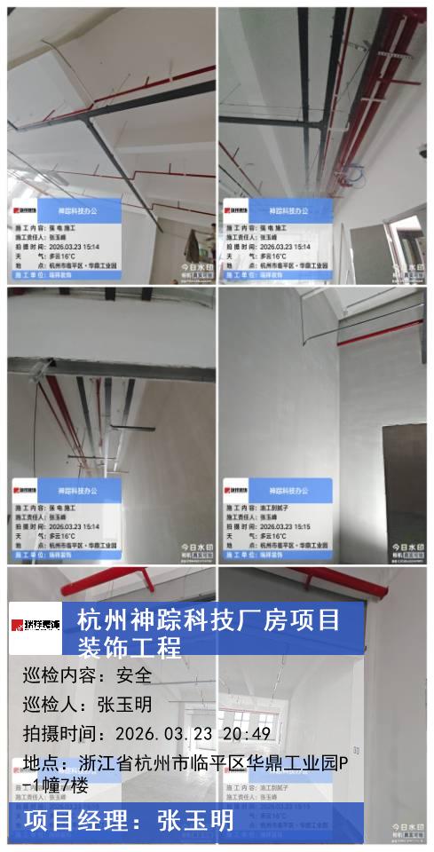 版权声明:本站所有文章除特别标注授权发布外,其他文字内容均为原创,享有著作权保护,未经许可不得以任何形式进行转载(包括且不限于:媒体、网站、公众号等)。本文链接 -> 杭州神踪科技有限公司办公室装修2026年03月23日项目经理巡检