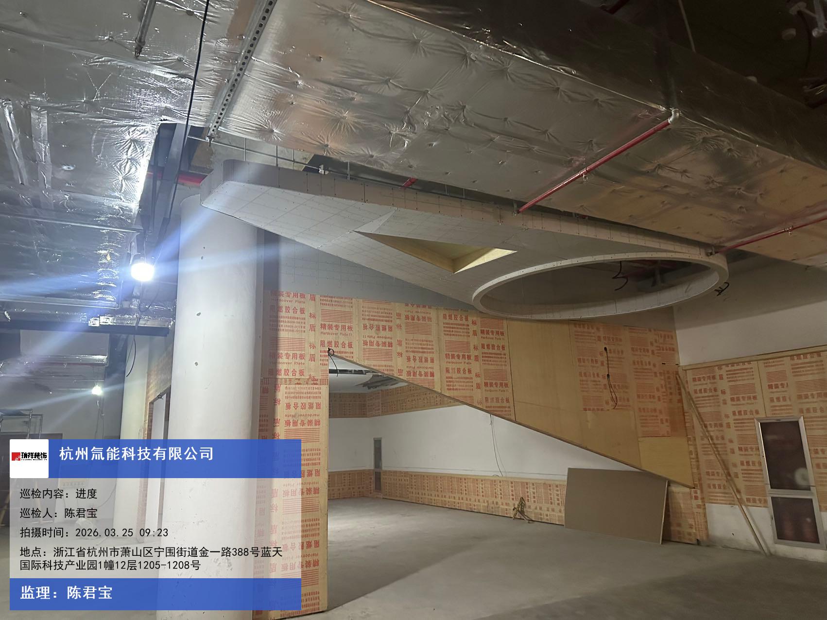 版权声明:本站所有文章除特别标注授权发布外,其他文字内容均为原创,享有著作权保护,未经许可不得以任何形式进行转载(包括且不限于:媒体、网站、公众号等)。本文链接 -> 杭州氚能科技有限公司写字楼装修2026年03月25日工程监理巡检