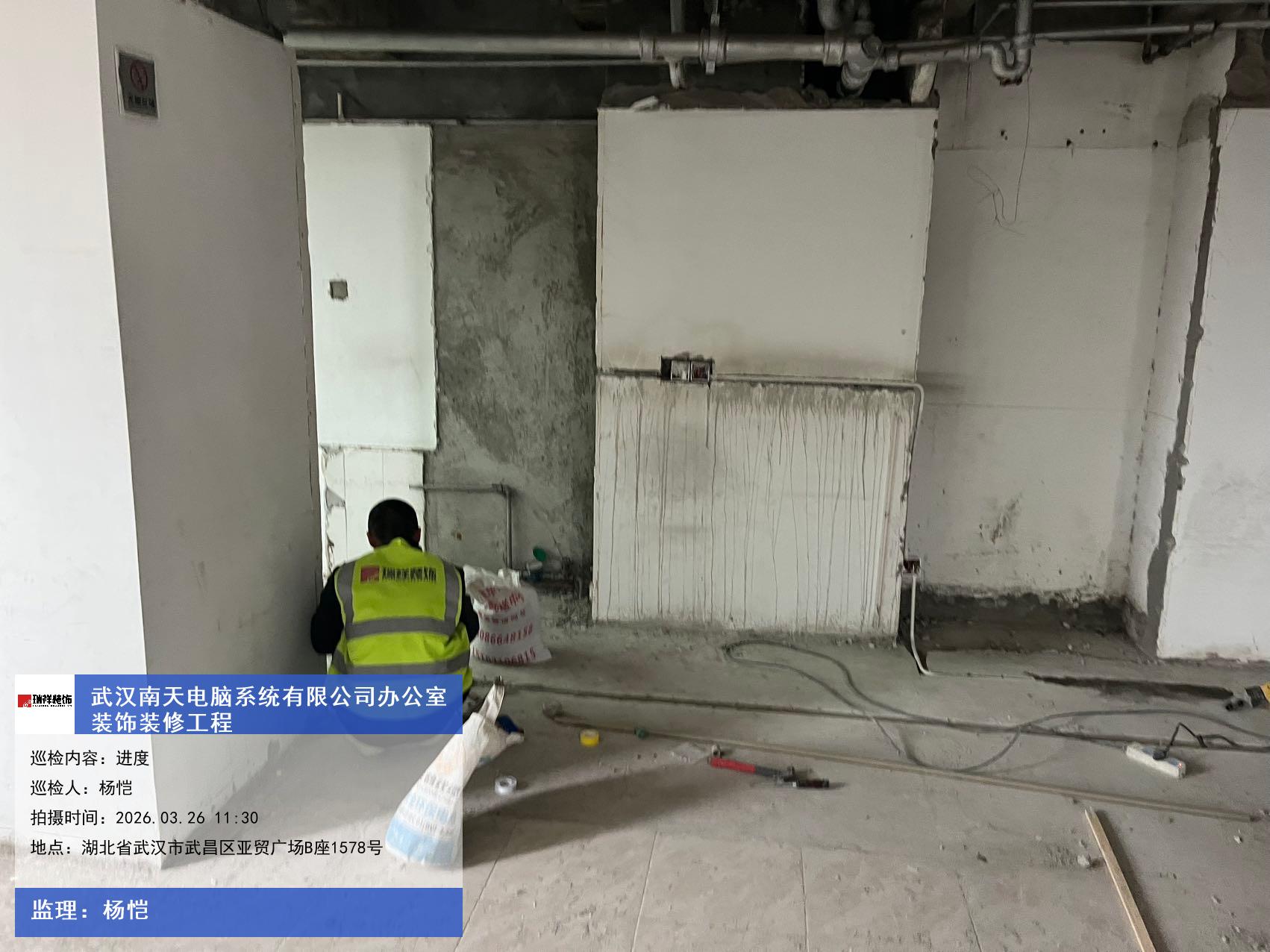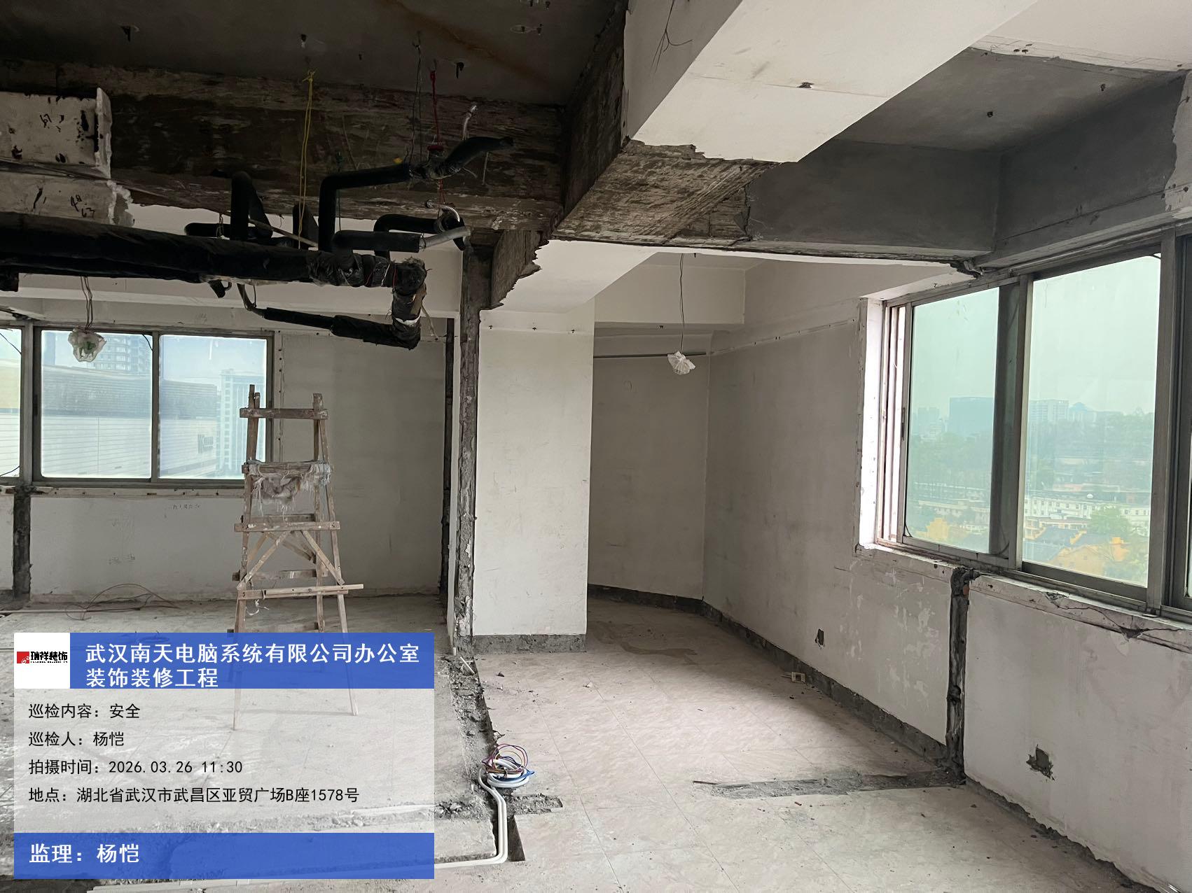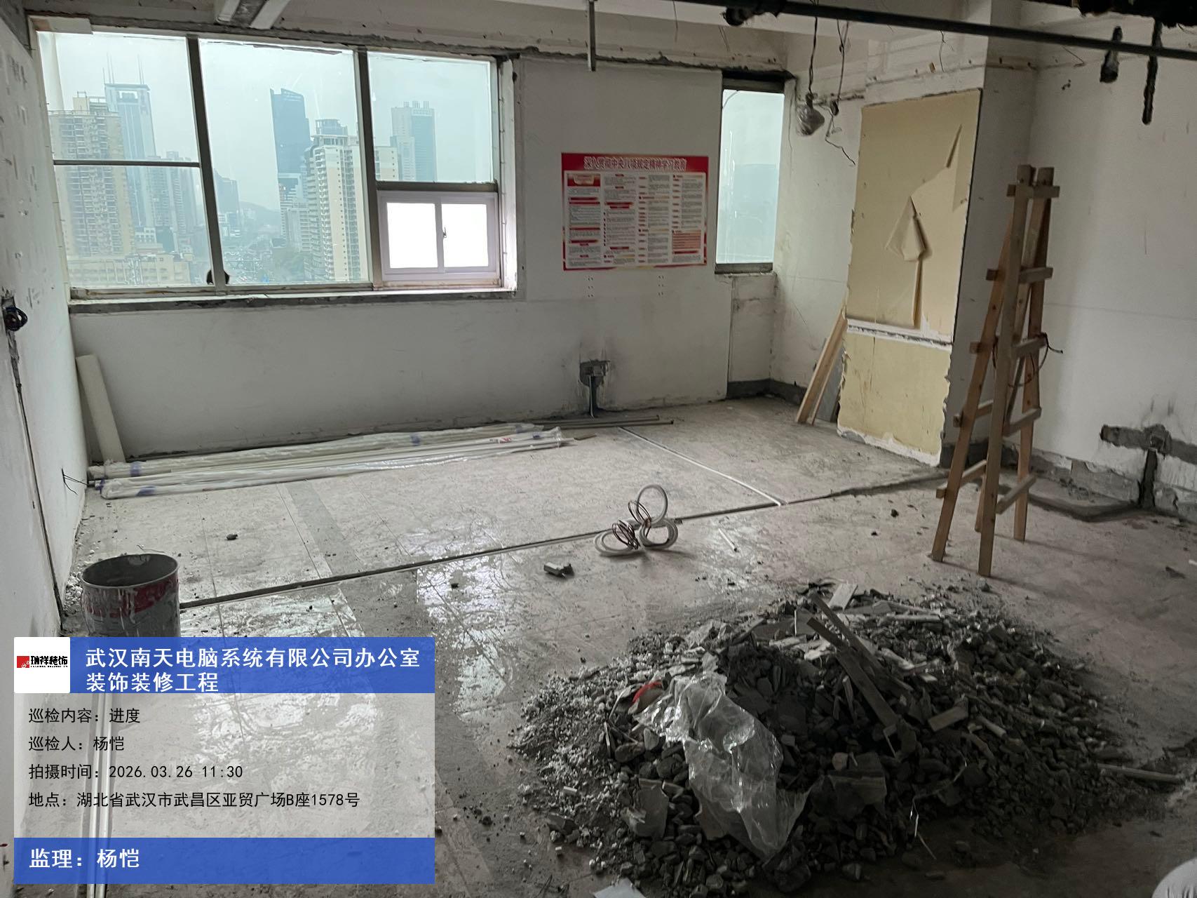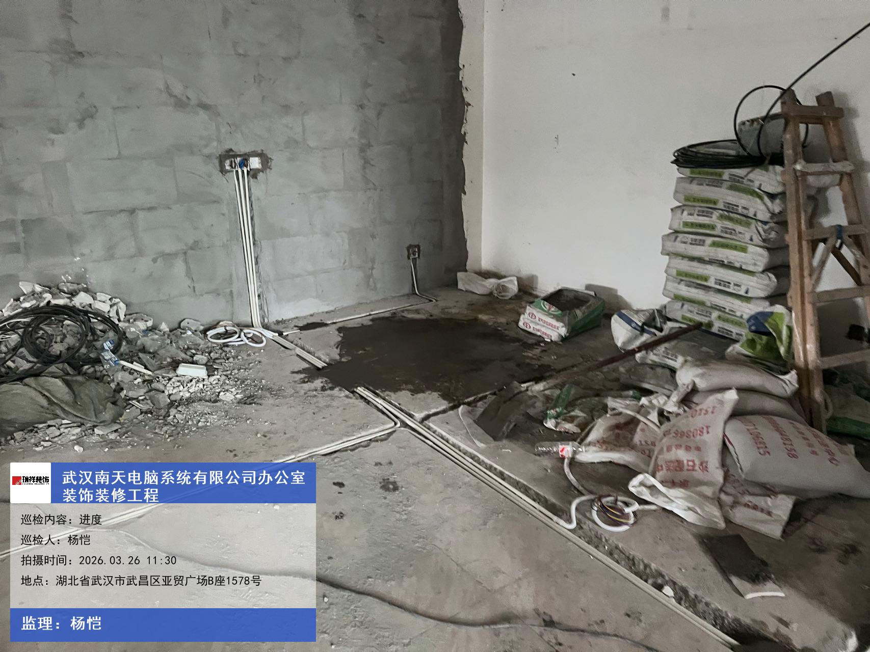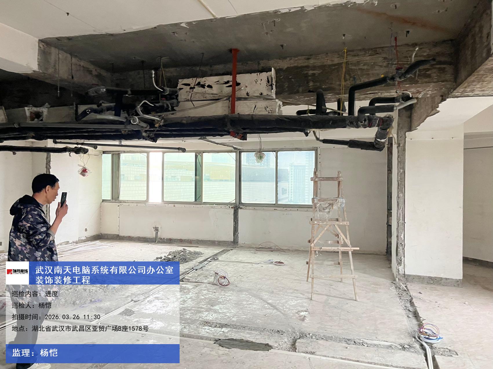版权声明:本站所有文章除特别标注授权发布外,其他文字内容均为原创,享有著作权保护,未经许可不得以任何形式进行转载(包括且不限于:媒体、网站、公众号等)。本文链接 -> 武汉南天电脑系统有限公司装修公司办公室2026年03月26日工程监理巡检