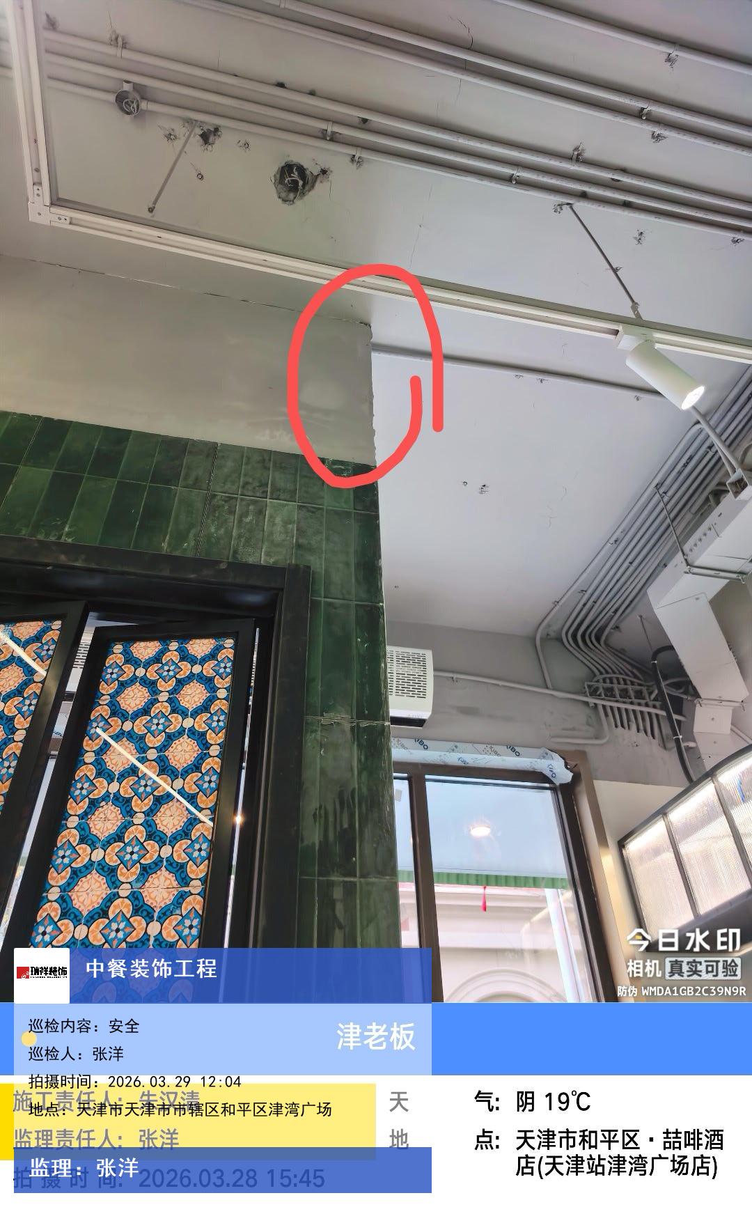 版权声明:本站所有文章除特别标注授权发布外,其他文字内容均为原创,享有著作权保护,未经许可不得以任何形式进行转载(包括且不限于:媒体、网站、公众号等)。本文链接 -> 中餐餐饮装修设计2026年03月29日工程监理巡检