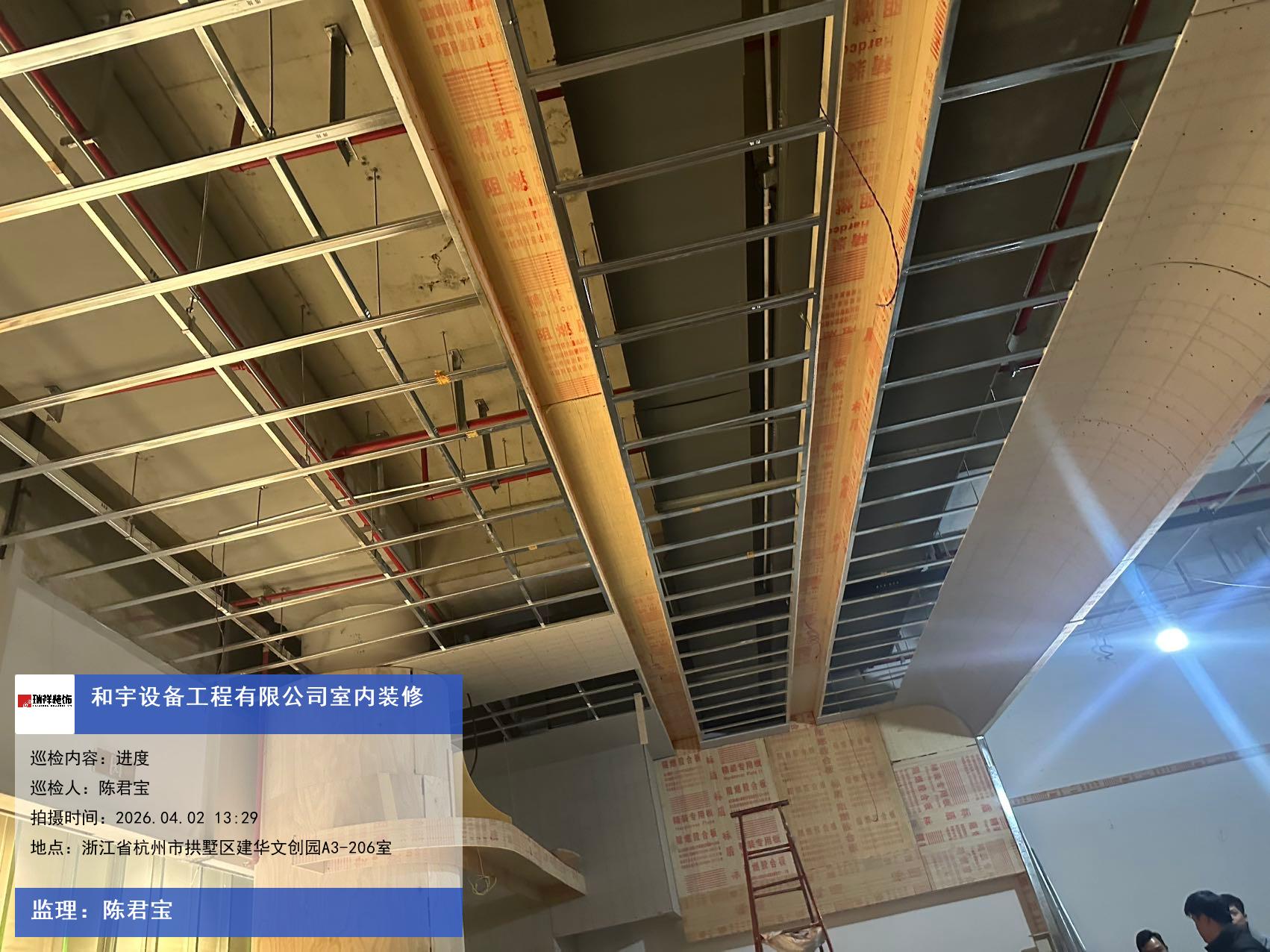 版权声明:本站所有文章除特别标注授权发布外,其他文字内容均为原创,享有著作权保护,未经许可不得以任何形式进行转载(包括且不限于:媒体、网站、公众号等)。本文链接 -> 杭州和宇泳池设备工程有限公司写字楼装修公司2026年04月02日工程监理巡检