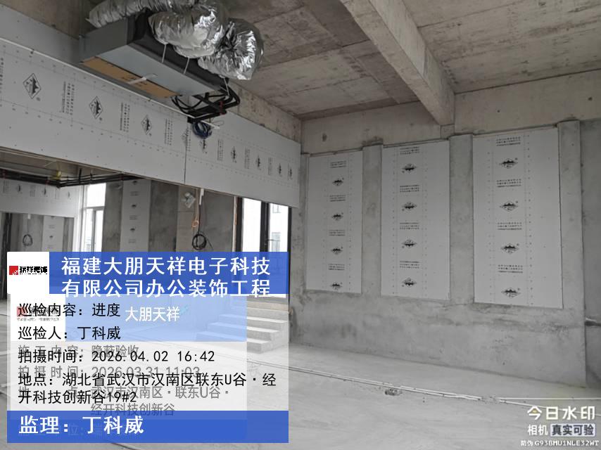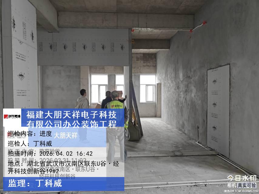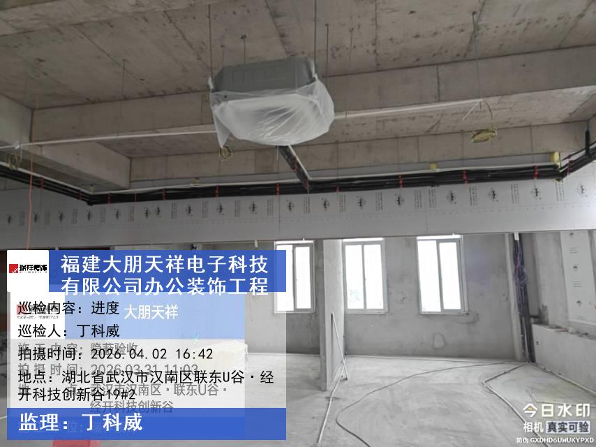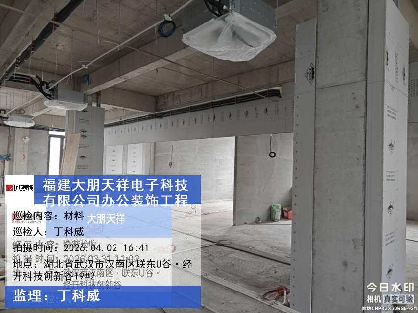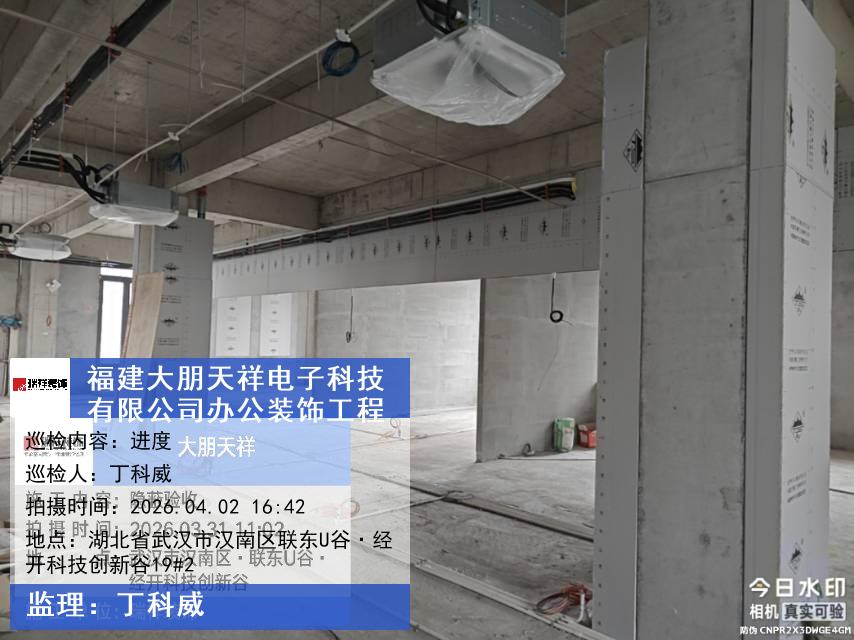 版权声明:本站所有文章除特别标注授权发布外,其他文字内容均为原创,享有著作权保护,未经许可不得以任何形式进行转载(包括且不限于:媒体、网站、公众号等)。本文链接 -> 福建大朋天祥电子科技有限公司办公楼装修2026年04月02日工程监理巡检