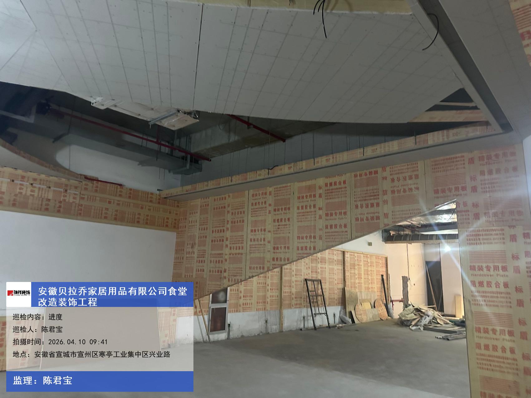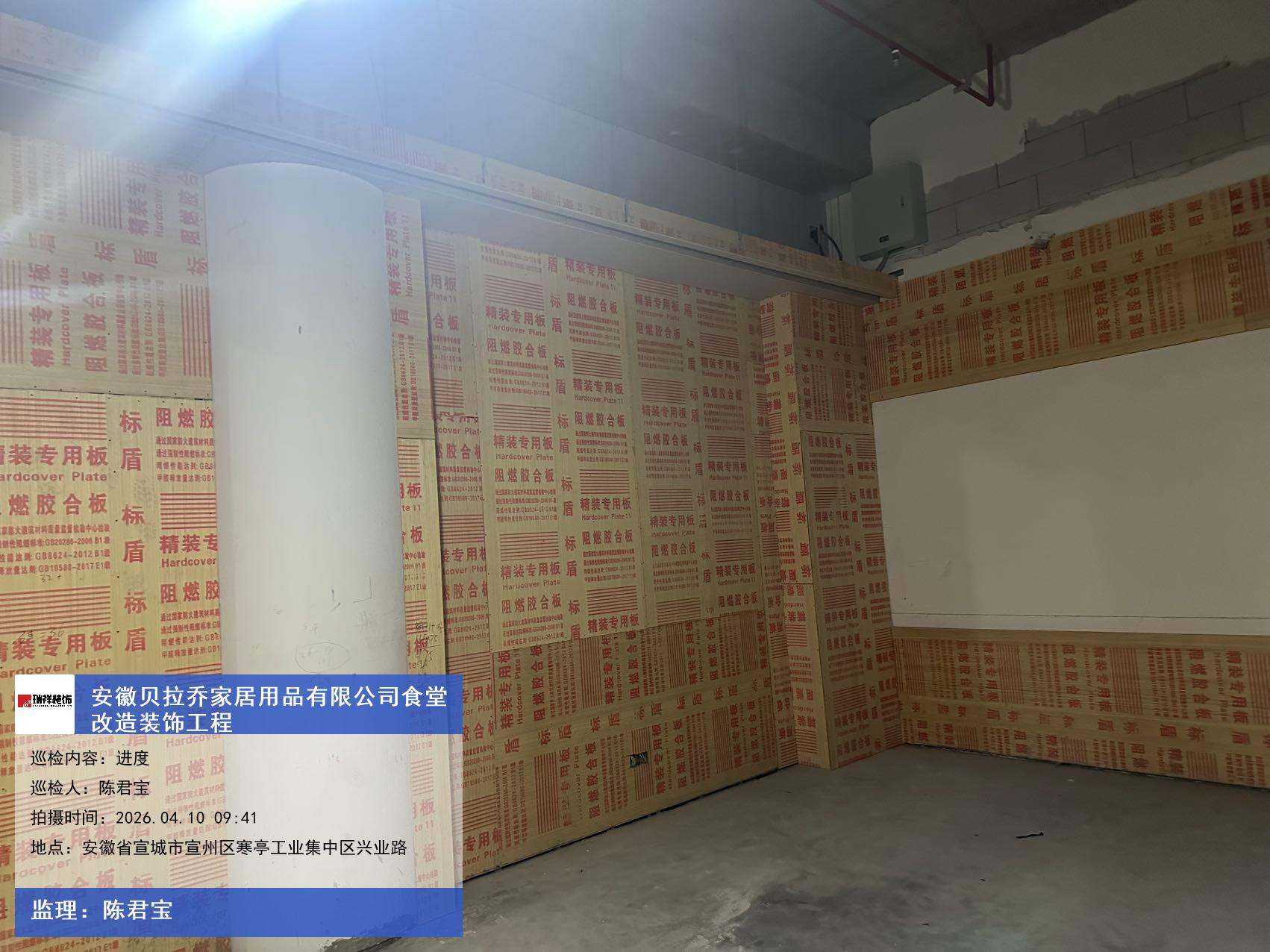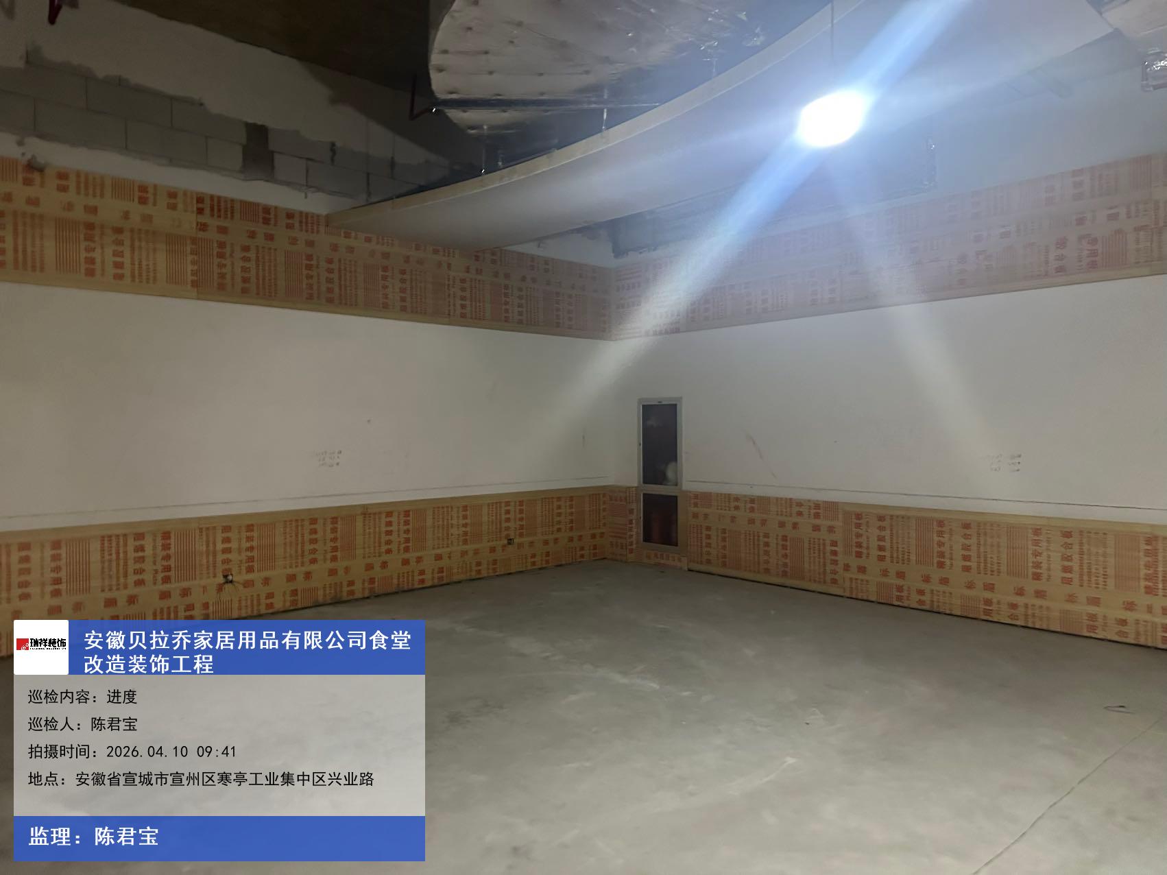 版权声明:本站所有文章除特别标注授权发布外,其他文字内容均为原创,享有著作权保护,未经许可不得以任何形式进行转载(包括且不限于:媒体、网站、公众号等)。本文链接 -> 安徽贝拉乔家居用品有限公司食堂改造酒楼装修设计2026年04月10日工程监理巡检