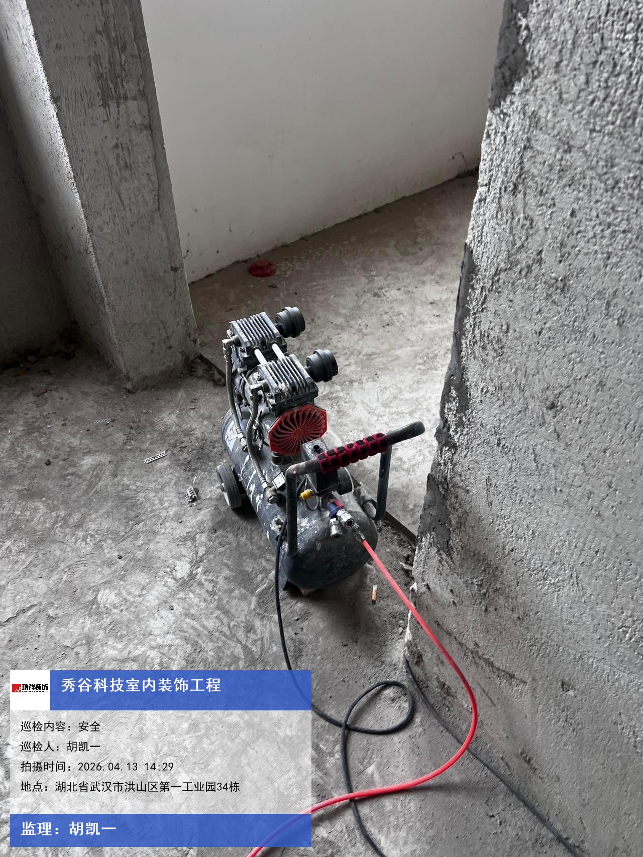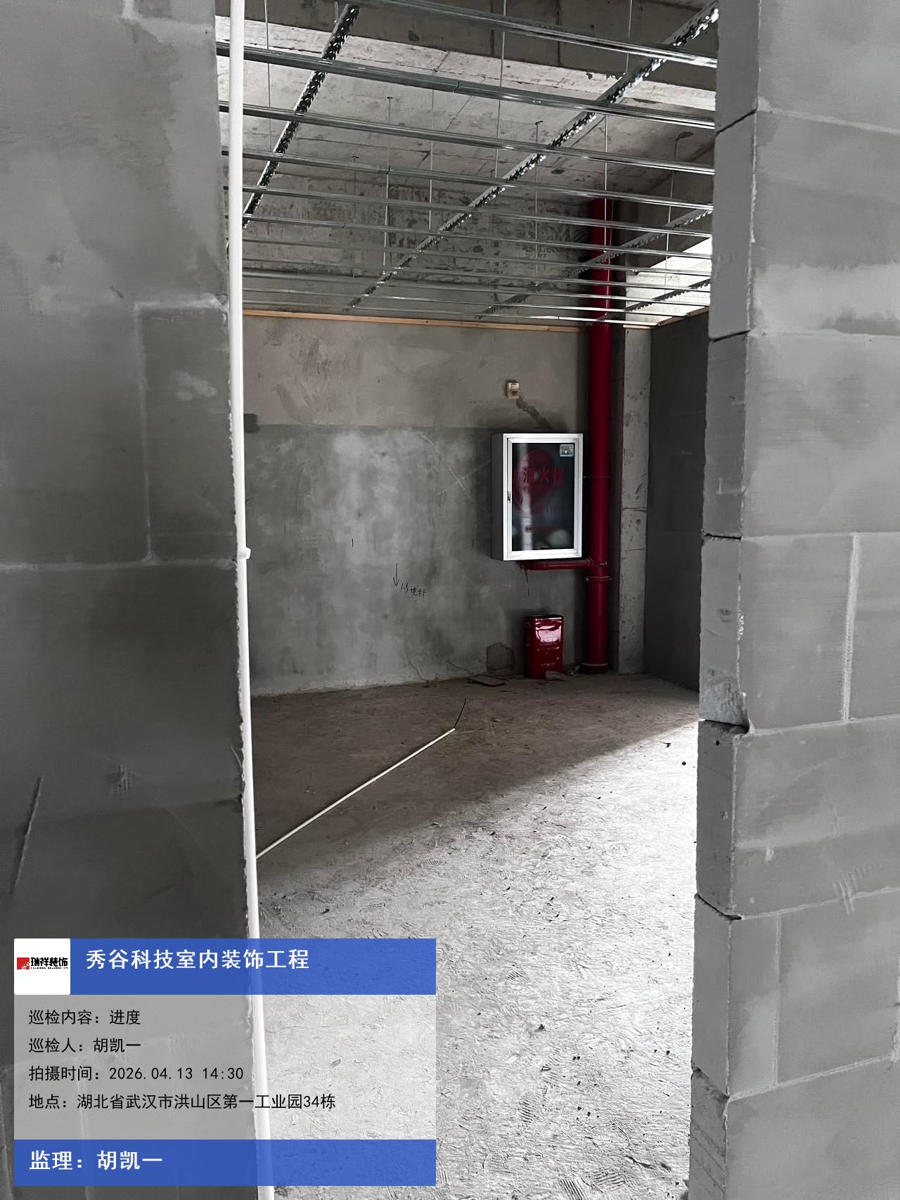 版权声明:本站所有文章除特别标注授权发布外,其他文字内容均为原创,享有著作权保护,未经许可不得以任何形式进行转载(包括且不限于:媒体、网站、公众号等)。本文链接 -> 武汉秀谷科技有限公司装修公司办公室2026年04月13日工程监理巡检