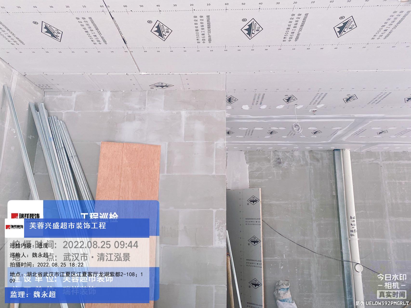 版权声明:本站所有文章除特别标注授权发布外,其他文字内容均为原创,享有著作权保护,未经许可不得以任何形式进行转载(包括且不限于:媒体、网站、公众号等)。本文链接 -> 芙蓉兴盛超市商业装修2022年08月25日工程监理巡检