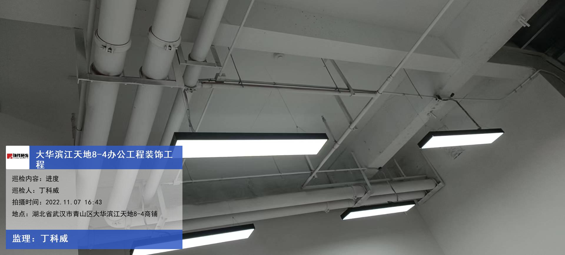 版权声明:本站所有文章除特别标注授权发布外,其他文字内容均为原创,享有著作权保护,未经许可不得以任何形式进行转载(包括且不限于:媒体、网站、公众号等)。本文链接 -> 大华滨江天地8-4办公工程写字楼装修公司2022年11月07日工程监理巡检