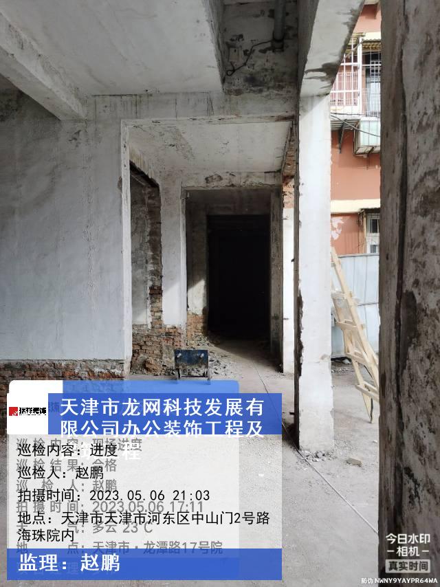 版权声明:本站所有文章除特别标注授权发布外,其他文字内容均为原创,享有著作权保护,未经许可不得以任何形式进行转载(包括且不限于:媒体、网站、公众号等)。本文链接 -> 天津市龙网科技发展有限公司写字楼装修2023年05月06日工程监理巡检